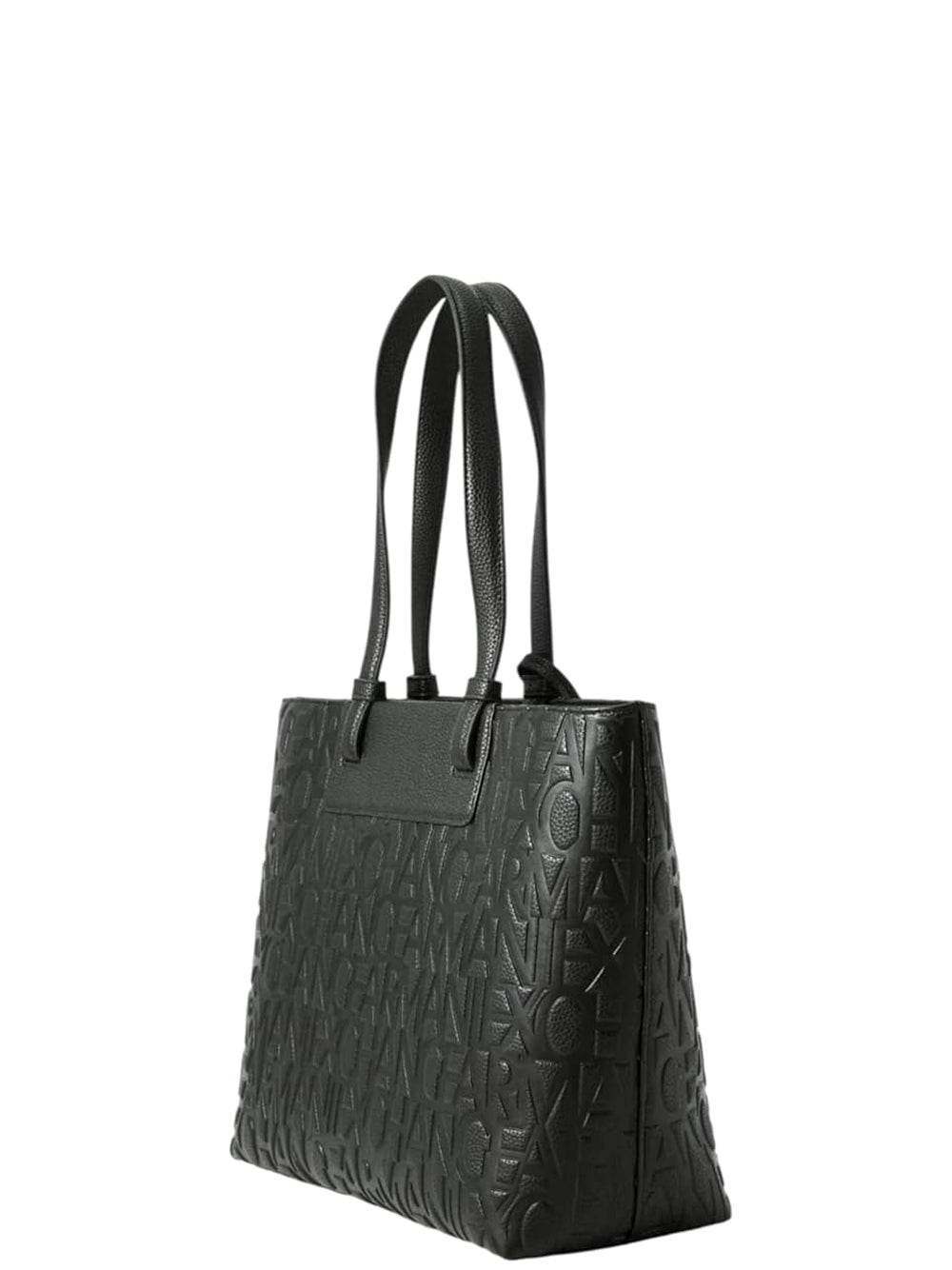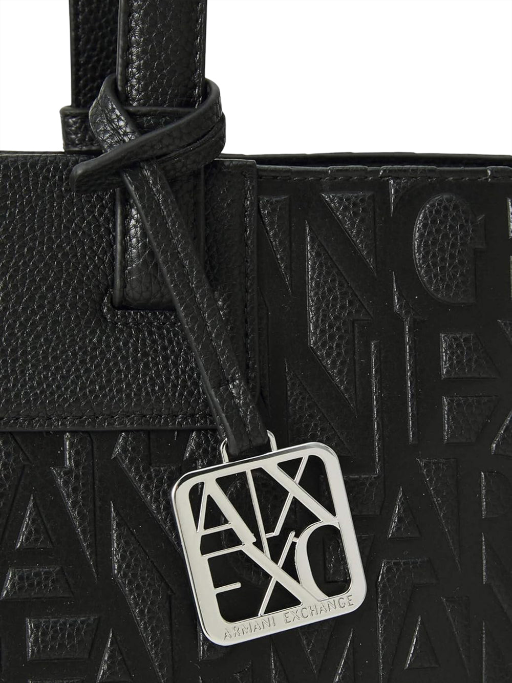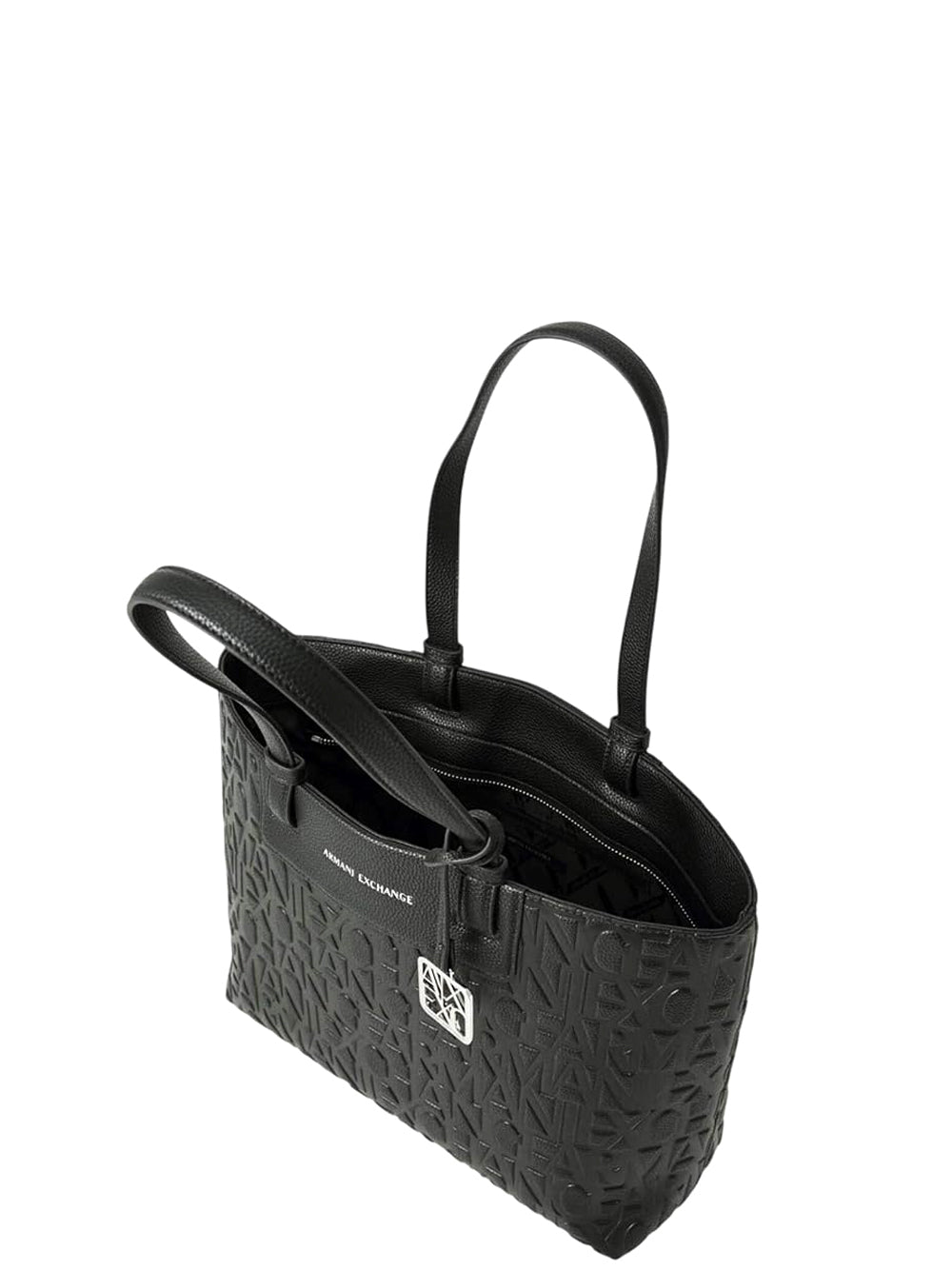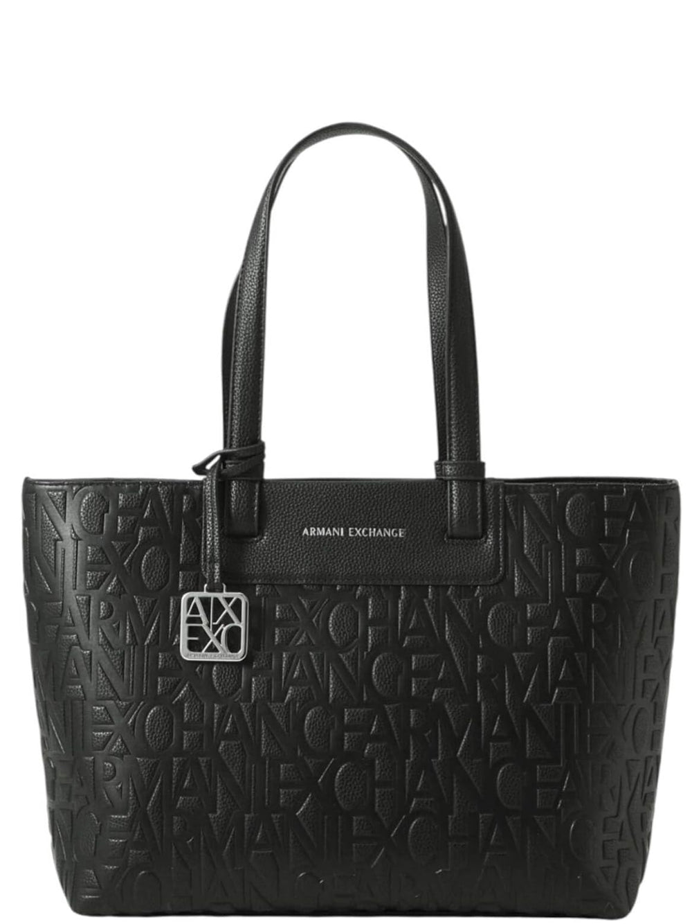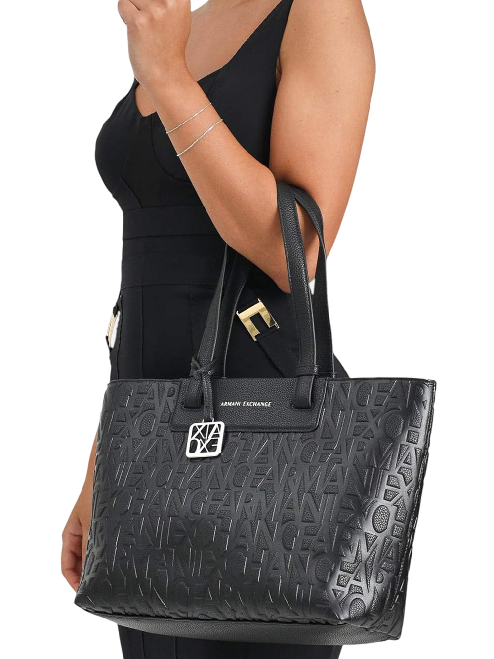 Borsa A|X Armani Exchange Shopping Bag Liz M – Nero Dimensioni: 32 cm (Larghezza) x 25 cm (Altezza) x 12 cm (Profondità) Composizione: 100% Poliuretano