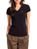 Questa t-shirt corta è perfetta per un look casual-chic ricco di stile e comodità. Realizzato in morbido jersey di cotone , il suo taglio corto mette in risalto la silhouette, mentre il logo scintillante in strass aggiunge un tocco glamour e moderno . Ideale da abbinare a jeans a vita alta o gonne fluide , questa t-shirt si adatta facilmente a diversi stili e occasioni.
