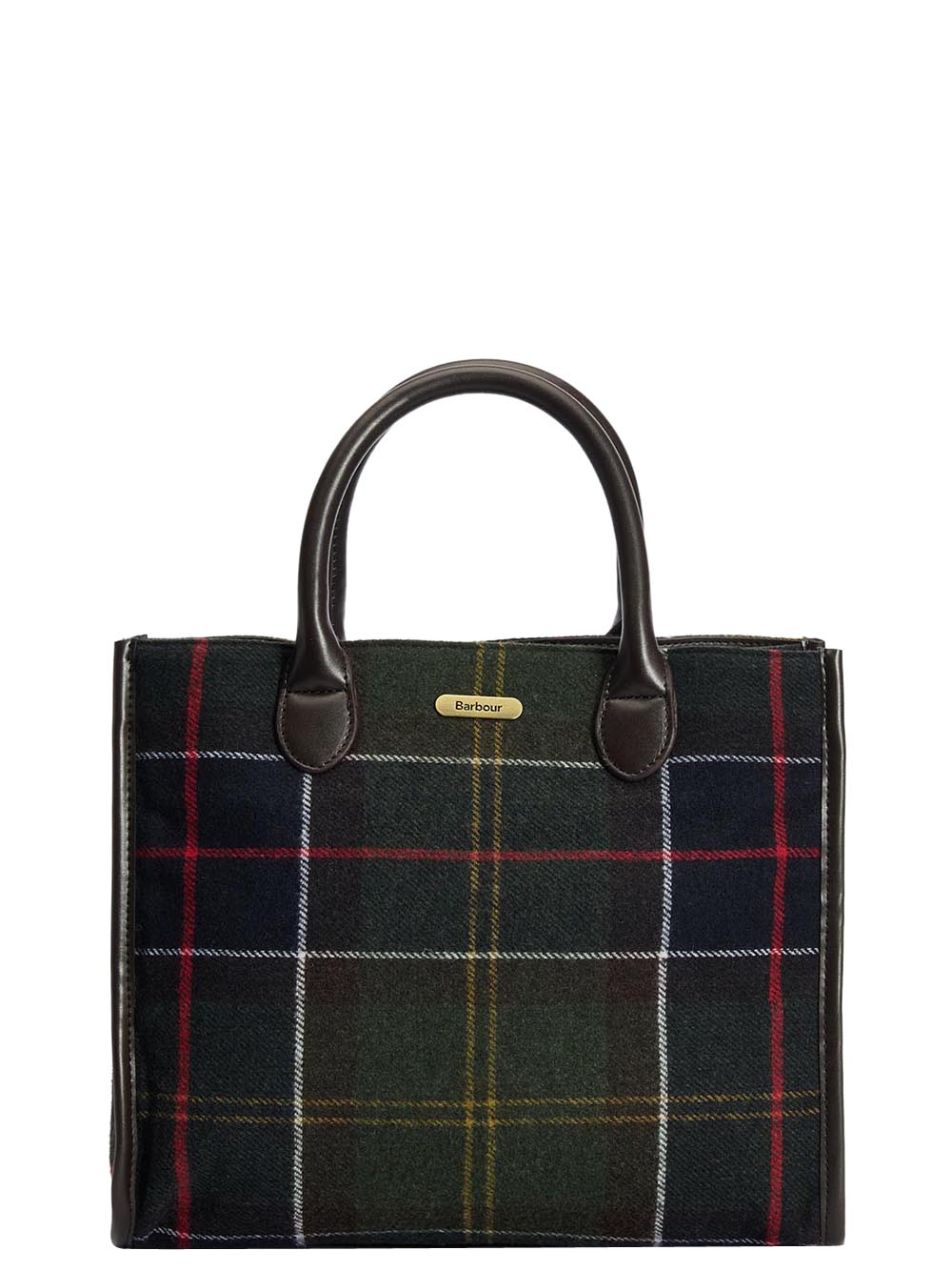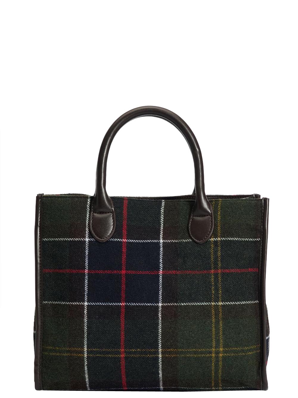 Dettagli: Borsa Tote Barbour Barrhill in Tartan - Verde La Borsa Tote Barrhill rende omaggio alle radici scozzesi di Barbour, il cui heritage affonda nella città di Dumfries, al confine con la Scozia. Questa tote, elegante e compatta, porta il caratteristico motivo tartan in misto lana - tipicamente utilizzato sulle finiture dei capi più popolari - direttamente sui tuoi accessori. Le sue finiture a contrasto sono realizzate in un raffinato effetto pelle. Perfetta per portare con te gli oggetti essenziali di tutti i giorni, la borsa è dotata di grande versatilità: Due manici sulla parte superiore per un trasporto a mano. Una tracolla staccabile per portarla comodamente a spalla o a bandoliera. Il design è completato da un badge con logo Barbour in rilievo applicato sulla parte anteriore esterna. Dimensioni: Altezza: 27,5 cm, Larghezza: 31,5 cm, Profondità: 7,5 cm, Manico: 11 cm. Lunghezza totale della tracolla: 130 cm Composizione: 65% Poliestere, 20% Lana, 10% Acrilico, 5% Poliammide Fodera: 100% cotone Composizione: 100% Ecopelle (per le finiture e il badge con logo)