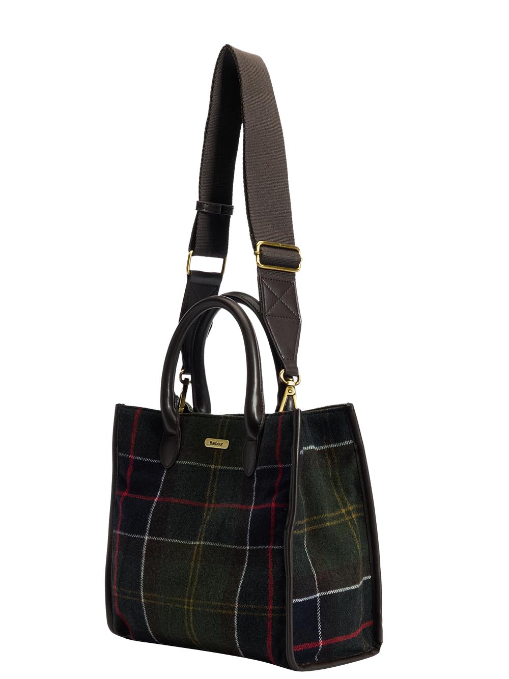 Borsa Tote Barbour Barrhill in Tartan - Verde Dimensioni: Altezza: 27,5 cm, Larghezza: 31,5 cm, Profondità: 7,5 cm, Manico: 11 cm. Lunghezza totale della tracolla: 130 cm Composizione: 65% Poliestere, 20% Lana, 10% Acrilico, 5% Poliammide