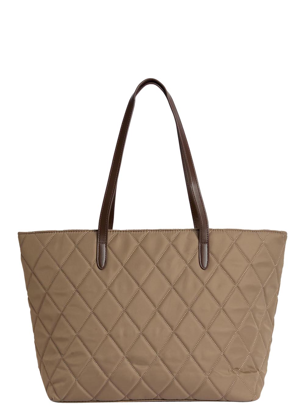 Questa tote spaziosa è l'ideale per affrontare la giornata con tutto l'essenziale a portata di mano. Vanta un design trapuntato e dettagli in raffinato effetto pelle, come i manici e il badge con logo in rilievo applicato sul davanti.