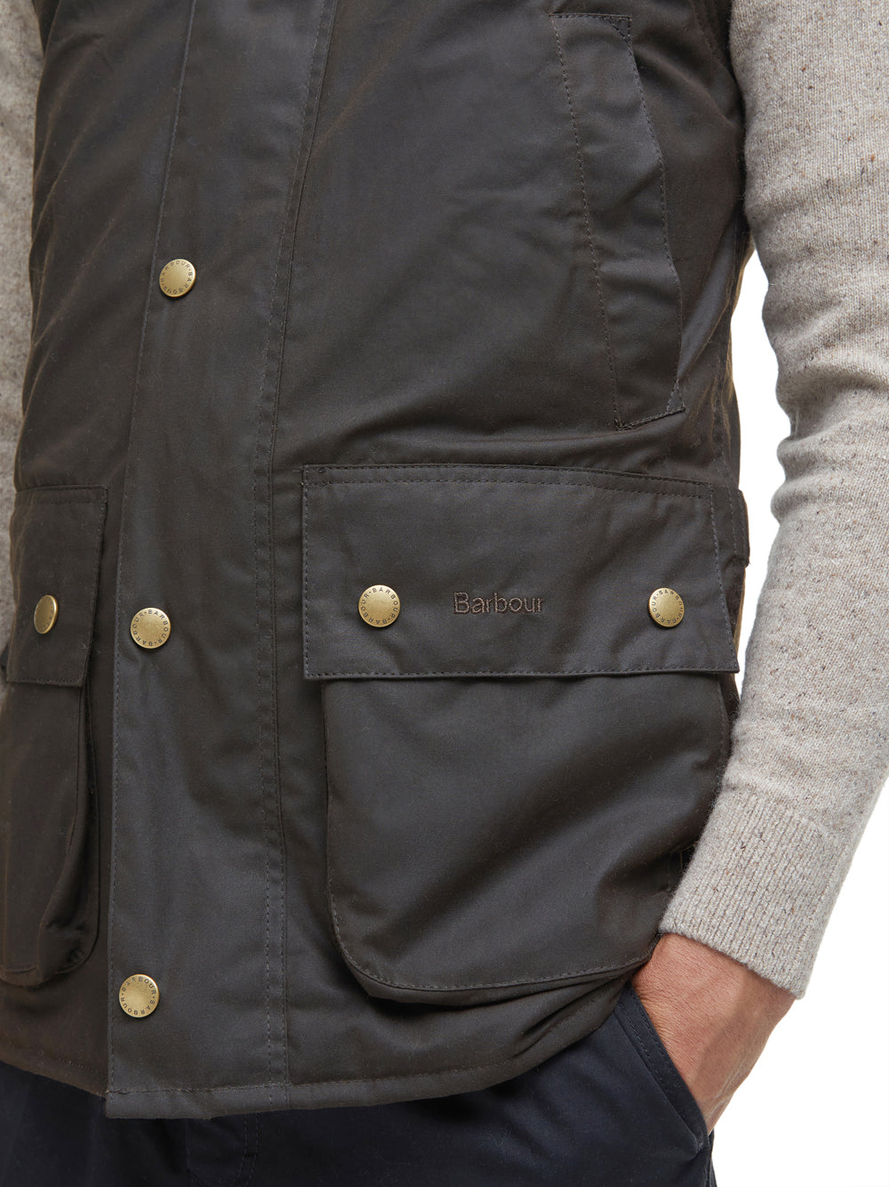 Realizzata in cotone cerato Sylkoil, questa versione offre una sensazione più flessibile e asciutta rispetto alla tradizionale finitura Thornproof. Il gilet è perfetto da indossare a strati grazie alla sua vestibilità rilassata e presenta: