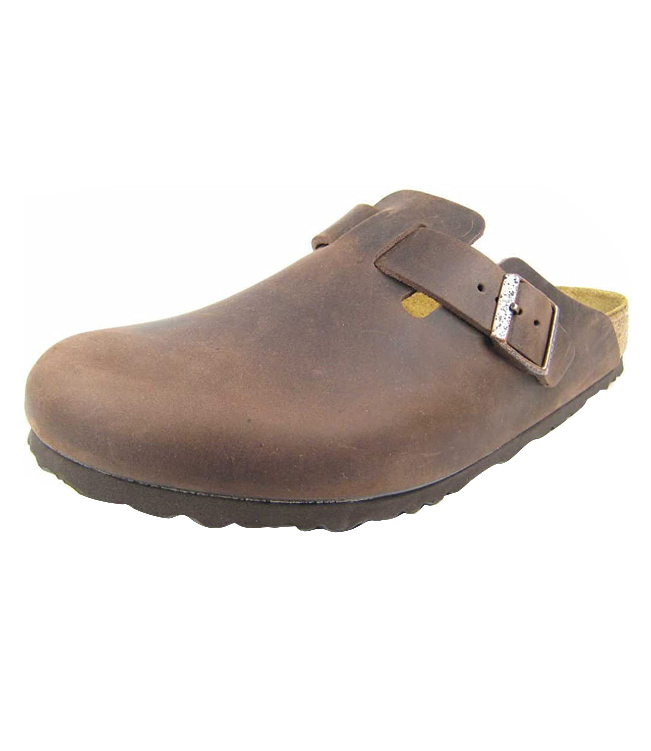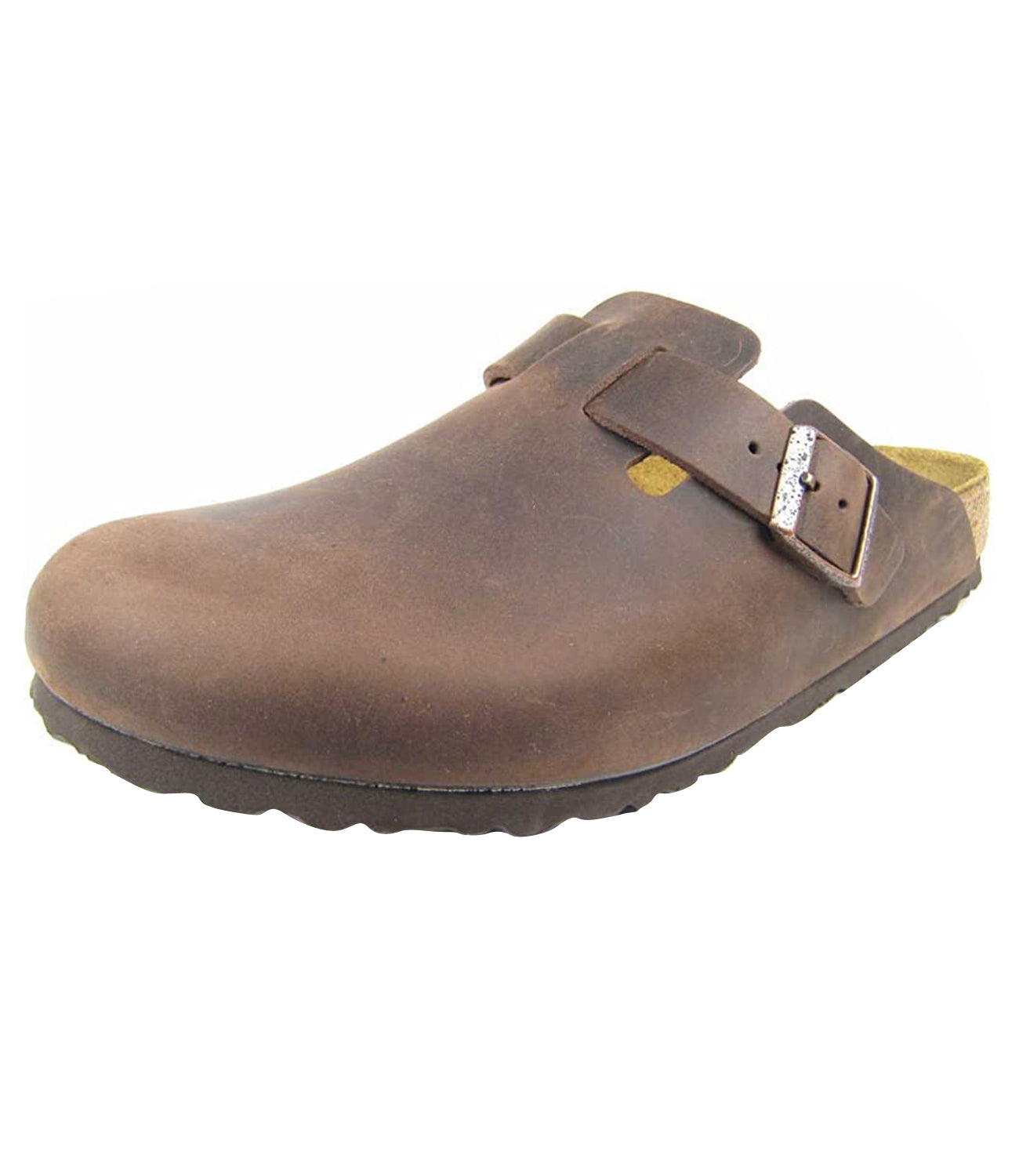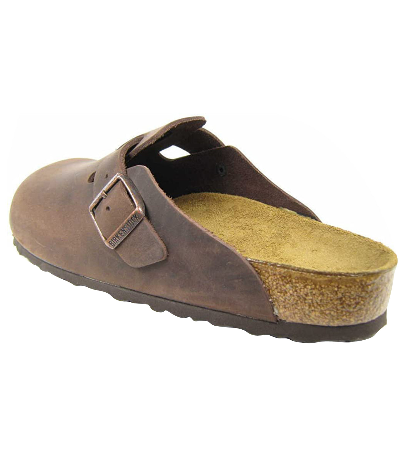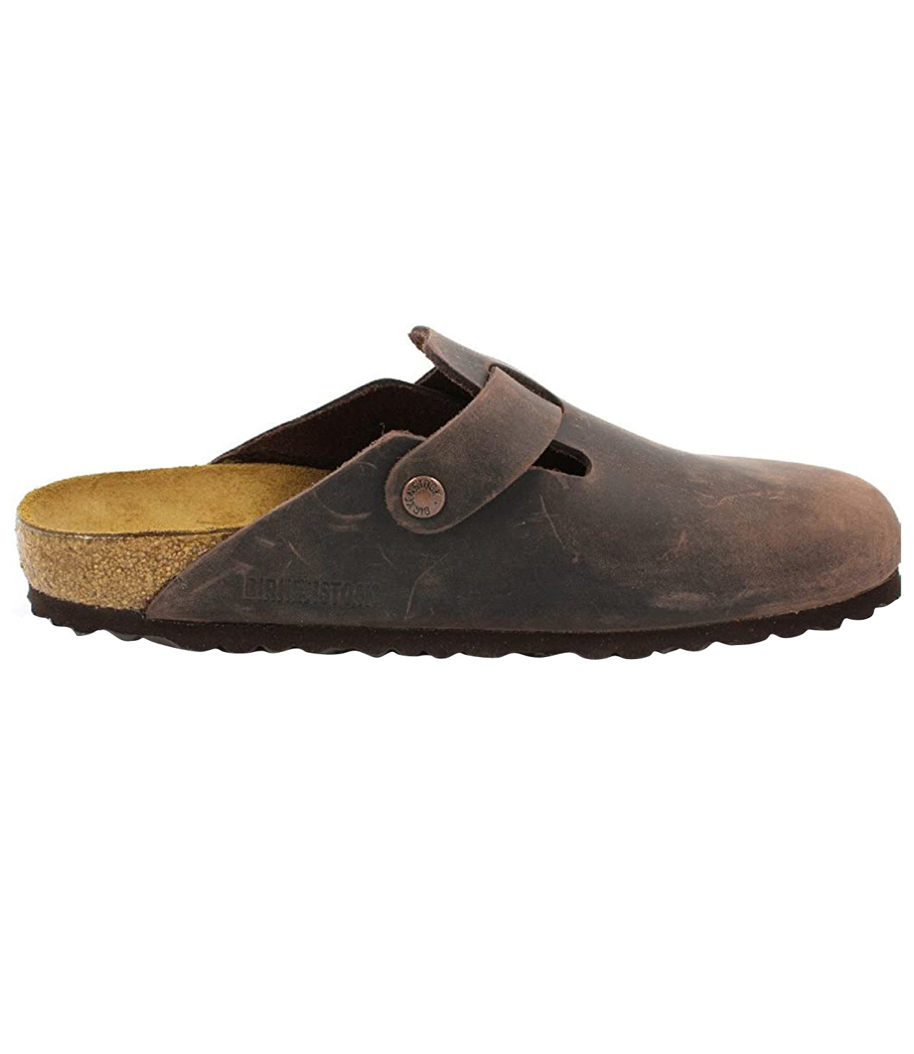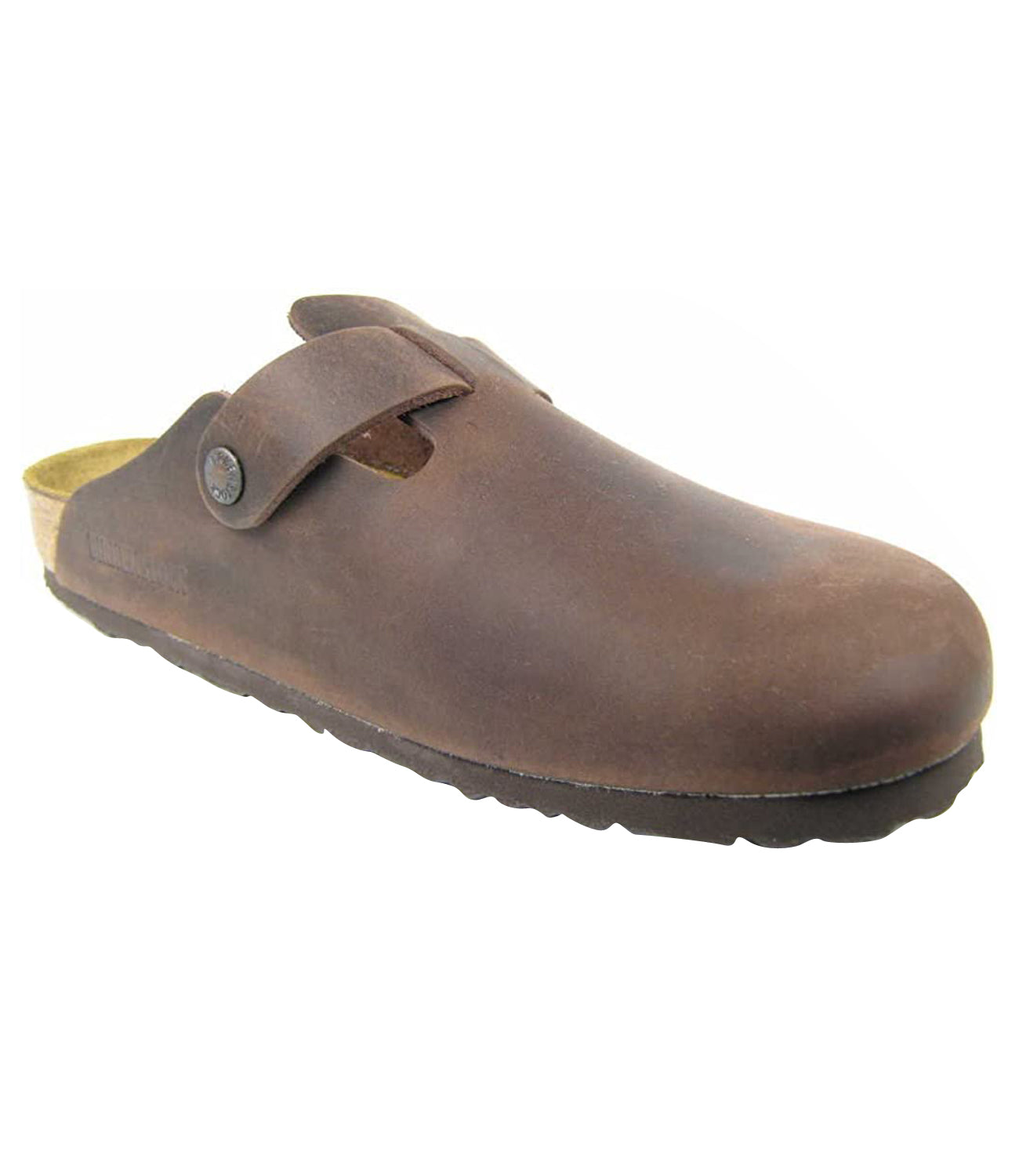 Birkenstock Ciabatte Boston – Marrone Habana Vestibilità: Regular fit. Calzata Stretta (Narrow Fit) Composizione: 100% Pelle (tomaia), 100% Sughero e lattice (plantare), 100% Gomma (suola)