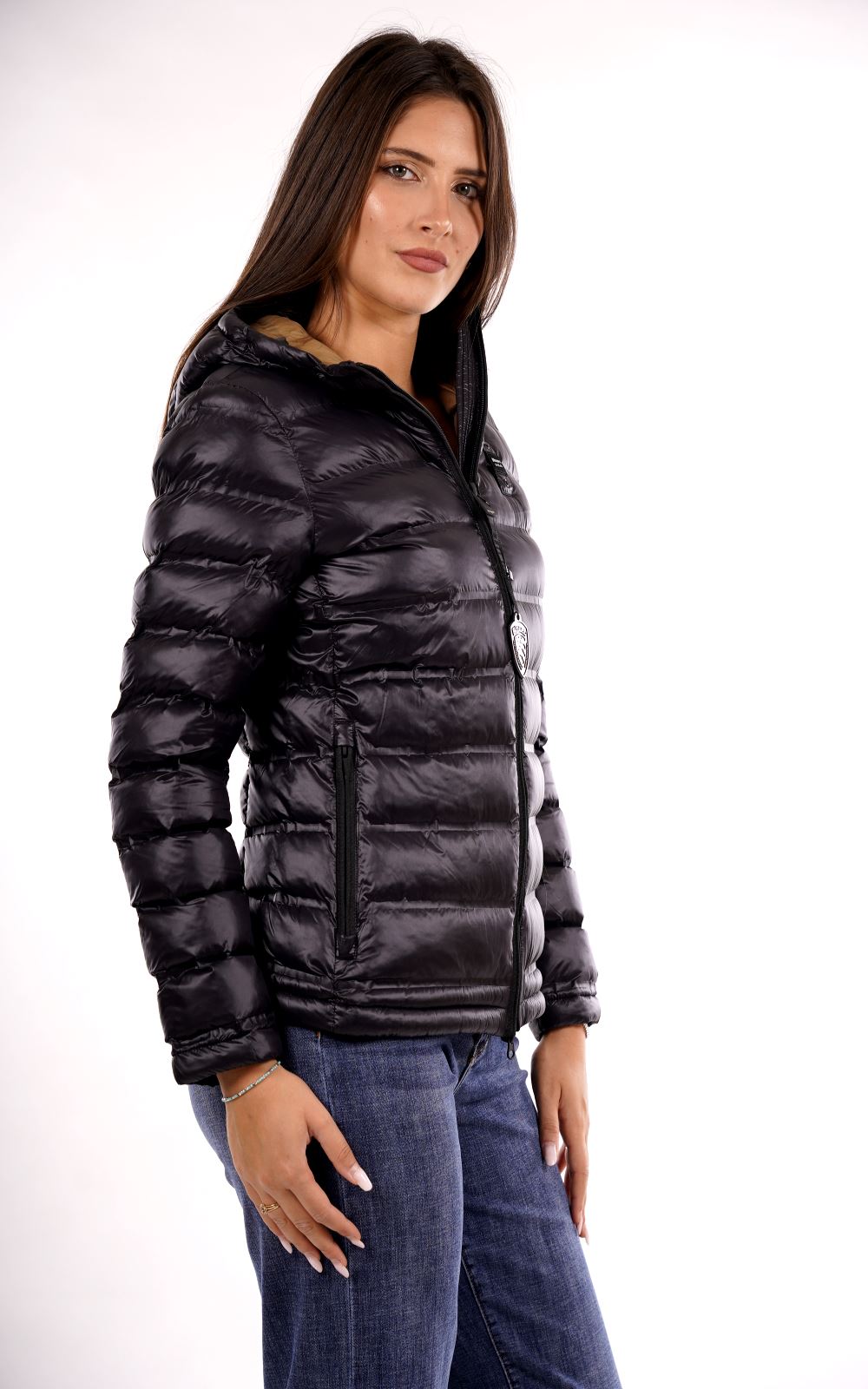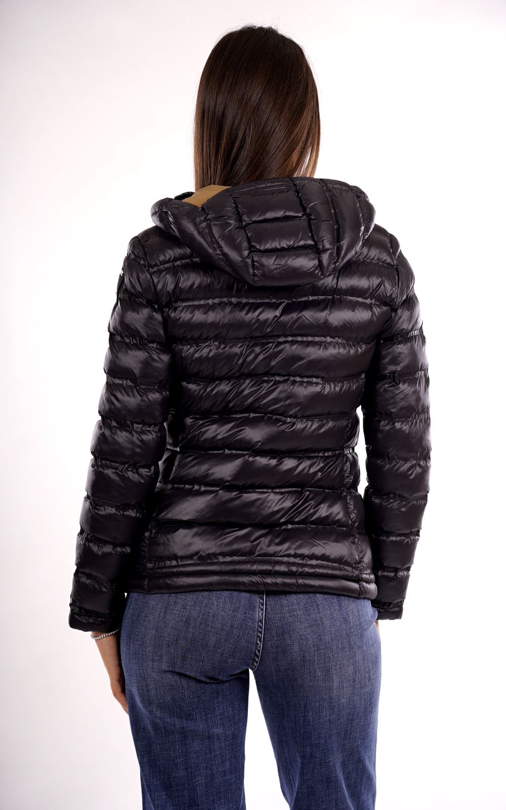 Giubbetto Donna Modello Ellis con cuciture nastrate a righe orizzontale. Capo con imbottitura leggera ed ecologica, con due cuciture lungo i lati per un effetto sfiancato. • Cappuccio fisso con coulisse • Realizzato in nylon • Foderato in nylon contrasto colore • Imbottito ovatta Repreve® • Chiusura con zip • Tasche con zip • Tasche interne aperte e con velcro • Coulisse sul fondo • Patch e passante con logo • Sacchetto contenitivo
