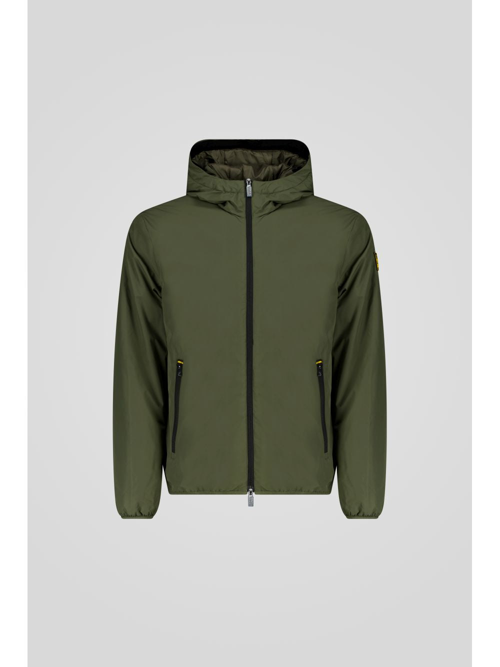 Un capo dal design semplice e pulito che offre protezione e comfort, perfetto per la mezza stagione o come strato intermedio. Questa giacca verde militare con cappuccio è realizzata in tessuto poly taslan, leggero e resistente, ed è trattata con DWR per proteggere dagli agenti atmosferici.