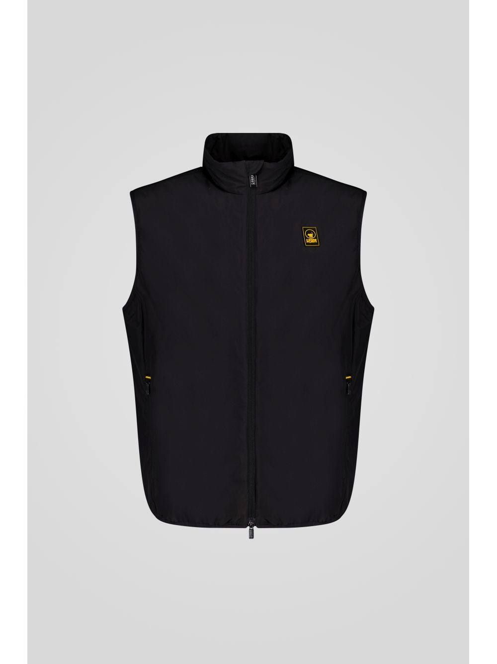 Dettagli: Fodera centrale e posteriore gialla, zip nere, puller logati, rifinitura con bordi in lycra su giromanica e fondo, tasche laterali con zip, personalizzazioni con gros grain giallo/nero, tasca interna al petto con zip gialla, trattamento di impermeabilizzazione (DWR), logo giallo/nero su manica sinistra.