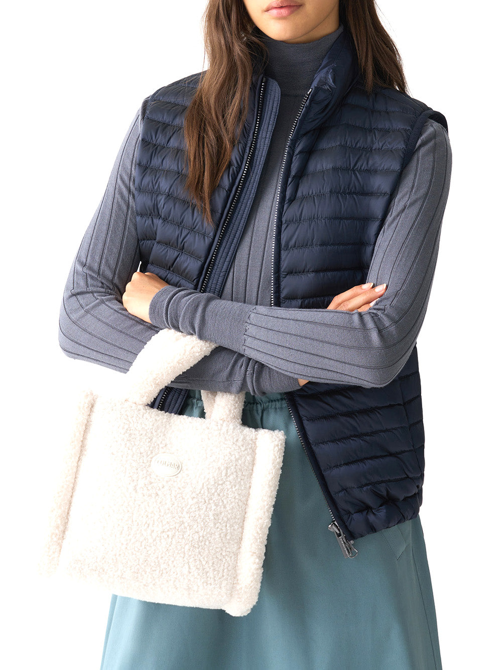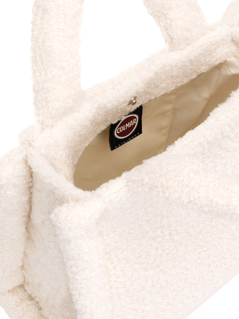 Soffice al tatto e dal design versatile, questa borsa in pelliccia sintetica effetto orsetto è l'accessorio perfetto per dare un tocco distintivo al look. La forma squadrata assicura capienza, mentre la tasca interna e la chiusura a bottone a pressione ne aumentano la praticità. Il logo Colmar Originals applicato sul davanti completa il design con eleganza.