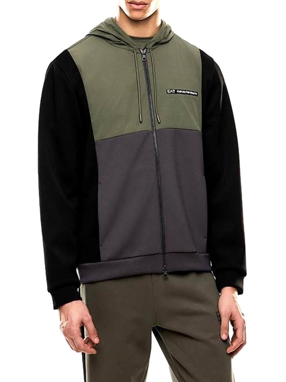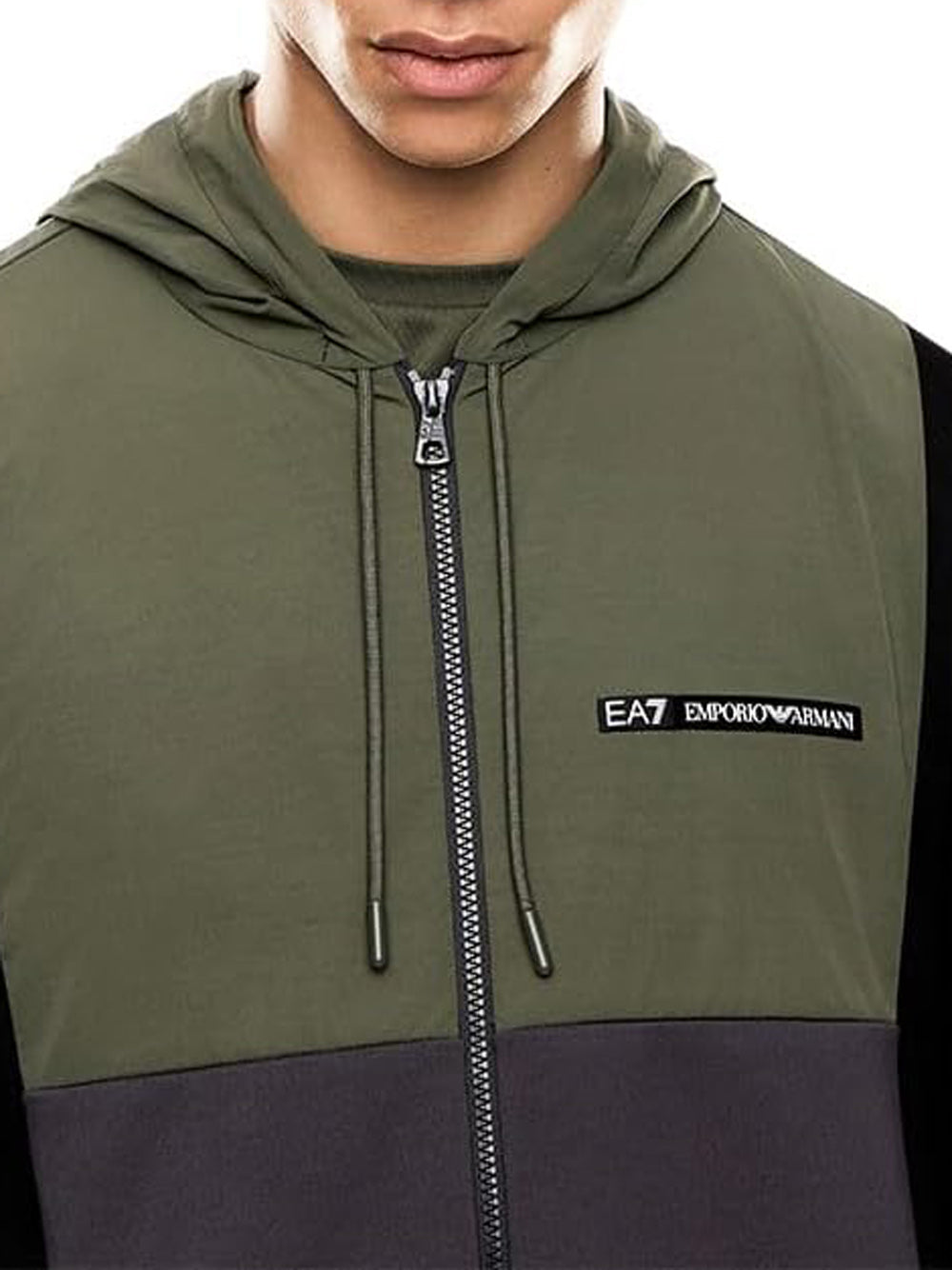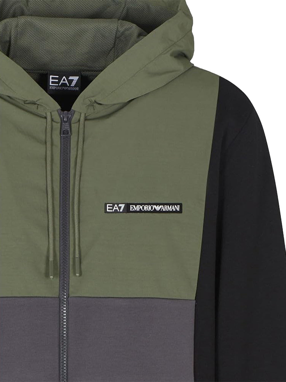 Dettagli: Felpa con cappuccio regular fit realizzata in misto nylon e viscosa stretch, caratterizzata da un effetto color-block creato nella palette colori di stagione. Un modello versatile, perfetto per il tempo libero e personalizzato con il logo EA7 sul petto. Il capo fa parte della linea Athletic Colour Block, una selezione di capi giovani e dinamici ispirata allo streetwear, contraddistinti da una palette di colori moderna e audace. - Composizione: 77% poliestere, 17% viscosa, 6% elastan. - Vestibilità regolare. - Cappuccio con coulisse. - Tasca frontale a marsupio. - Logo EA7 a contrasto sul petto.