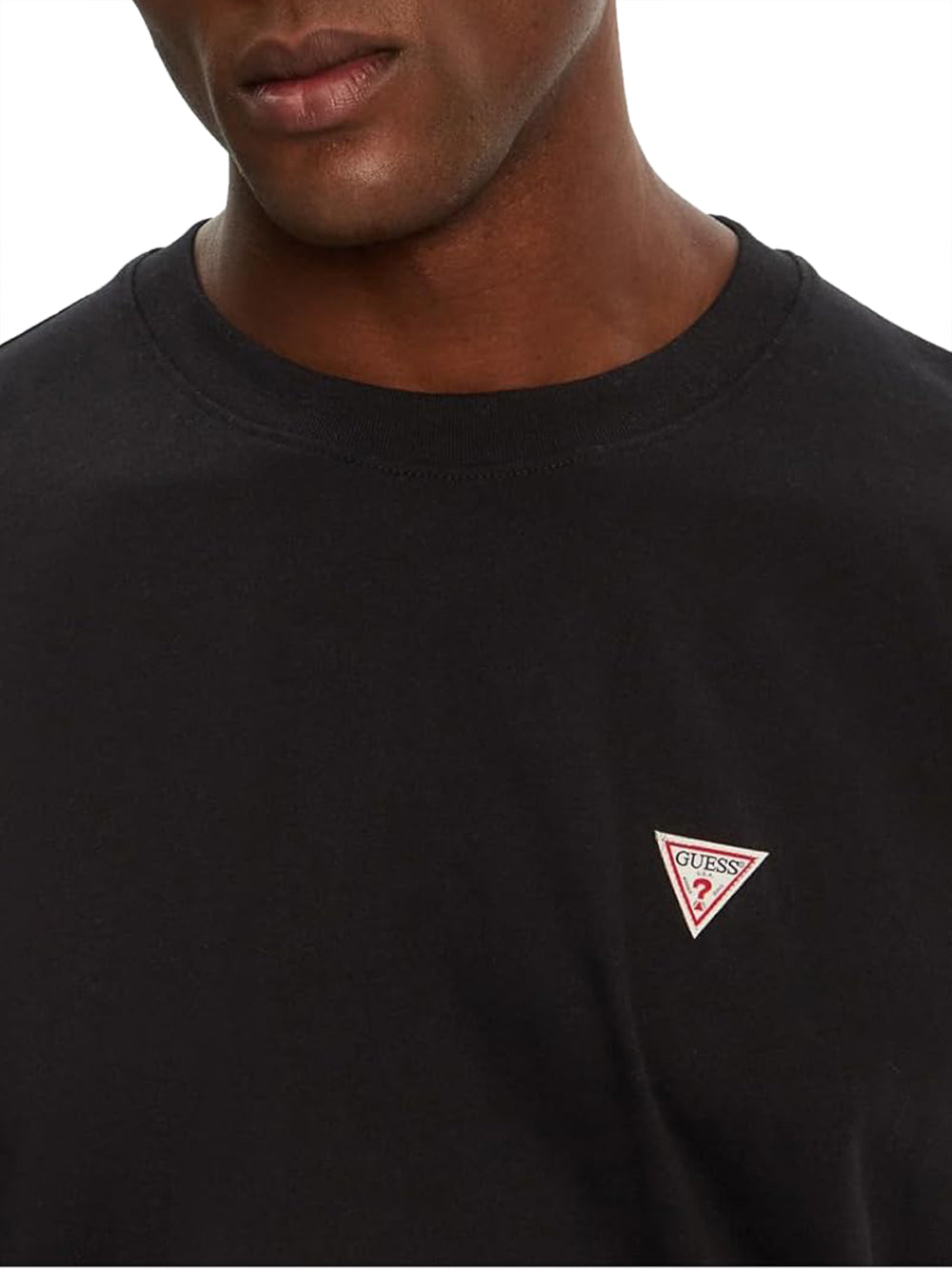 GUESS JEANS T-shirt Uomo Nero. Composizione: 100% cotone. Vestibilità e lunghezza relaxed.
