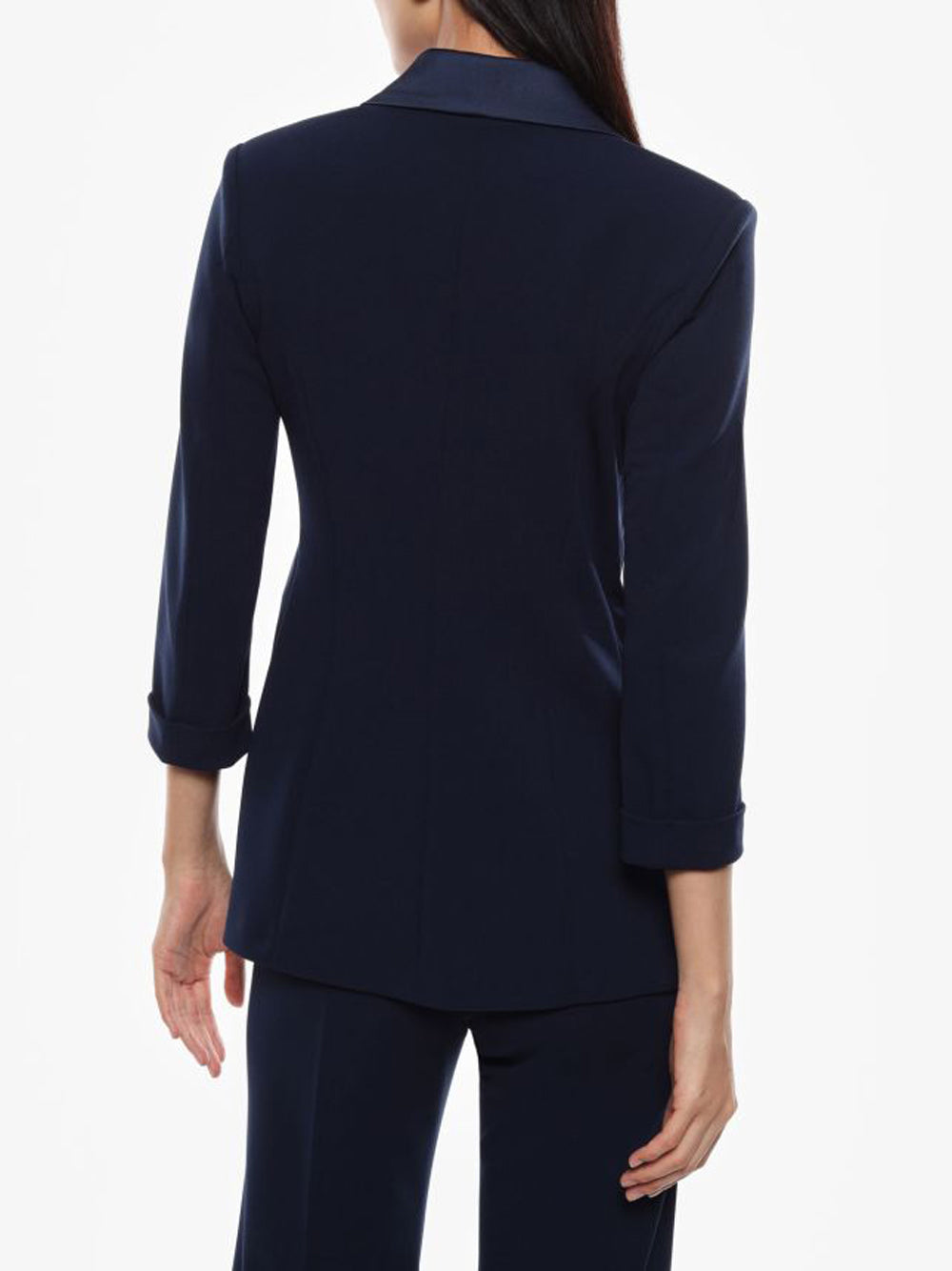 Questa giacca Imperial è un blazer doppiopetto elegante e dal taglio impeccabile, con una linea pulita. I dettagli in raso sui revers e sui bottoni aggiungono un tocco di raffinatezza, mentre la manica a 3/4 e il taglio dritto la rendono perfetta per un look sofisticato e contemporaneo.