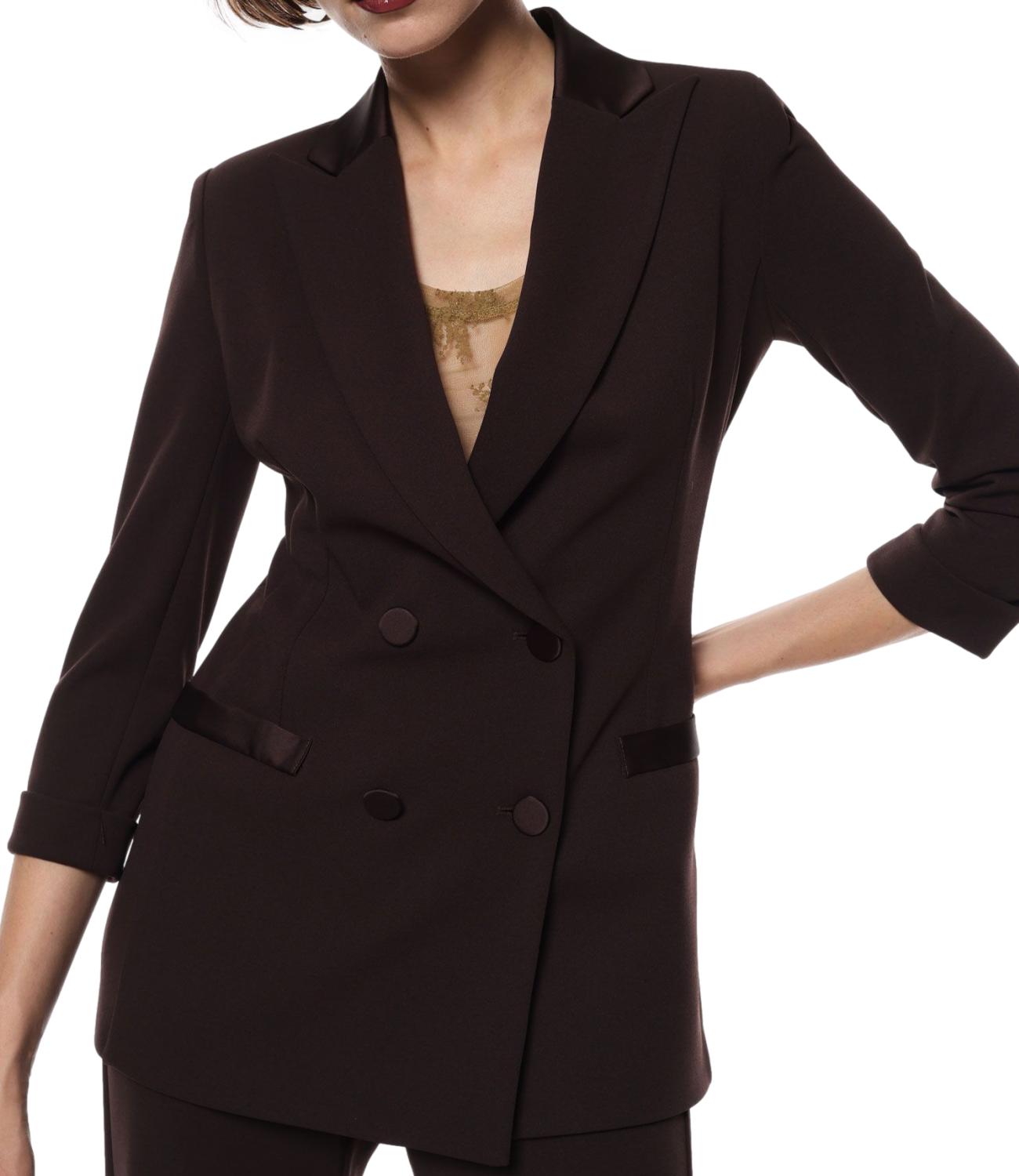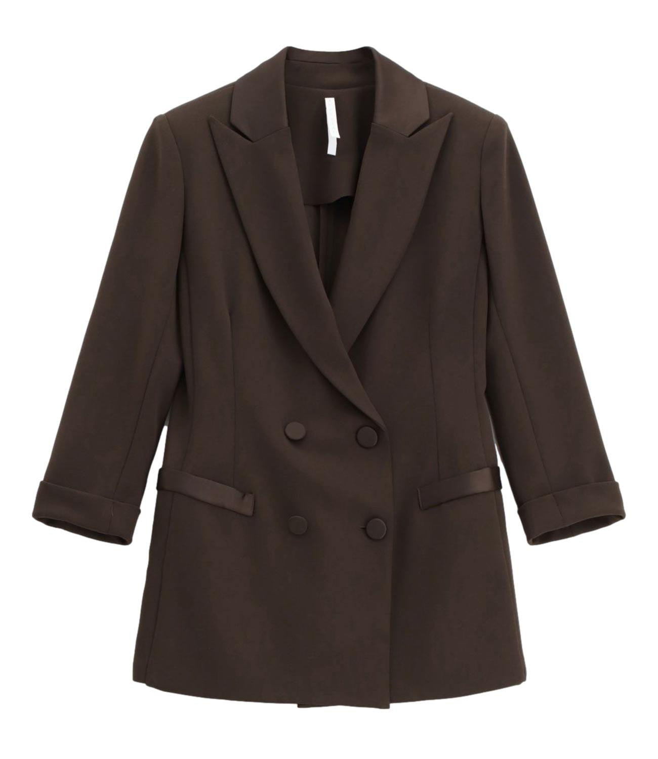 Il design è caratterizzato da una chiusura doppiopetto con bottoni e da un taglio sartoriale che esalta la figura. La giacca è leggera e comoda, ideale per un comfort ottimale.