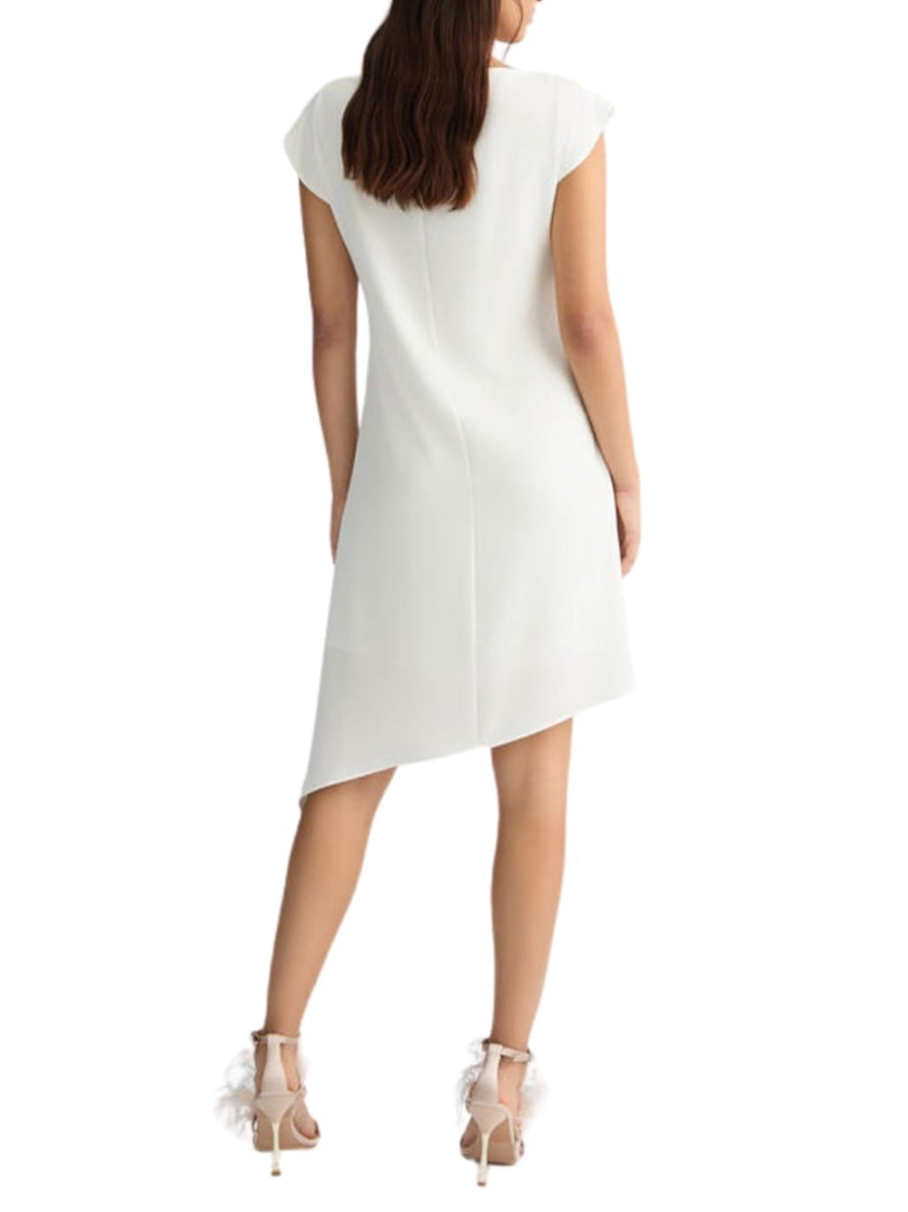 Dettagli: Linee pulite dal fascino etereo per celebrare gli eventi più speciali. Questo abito corto è una scelta raffinata per quei momenti da ricordare, arricchito da un elegante dettaglio gioiello logato che spicca sul candido sfondo bianco di twill. Abito corto bianco in twill stretch Scollo a barca Maniche ad aletta Dettaglio gioiello in metallo Orlo asimmetrico Fodera interna Composizione: 97% Poliestere, 3% Elastan