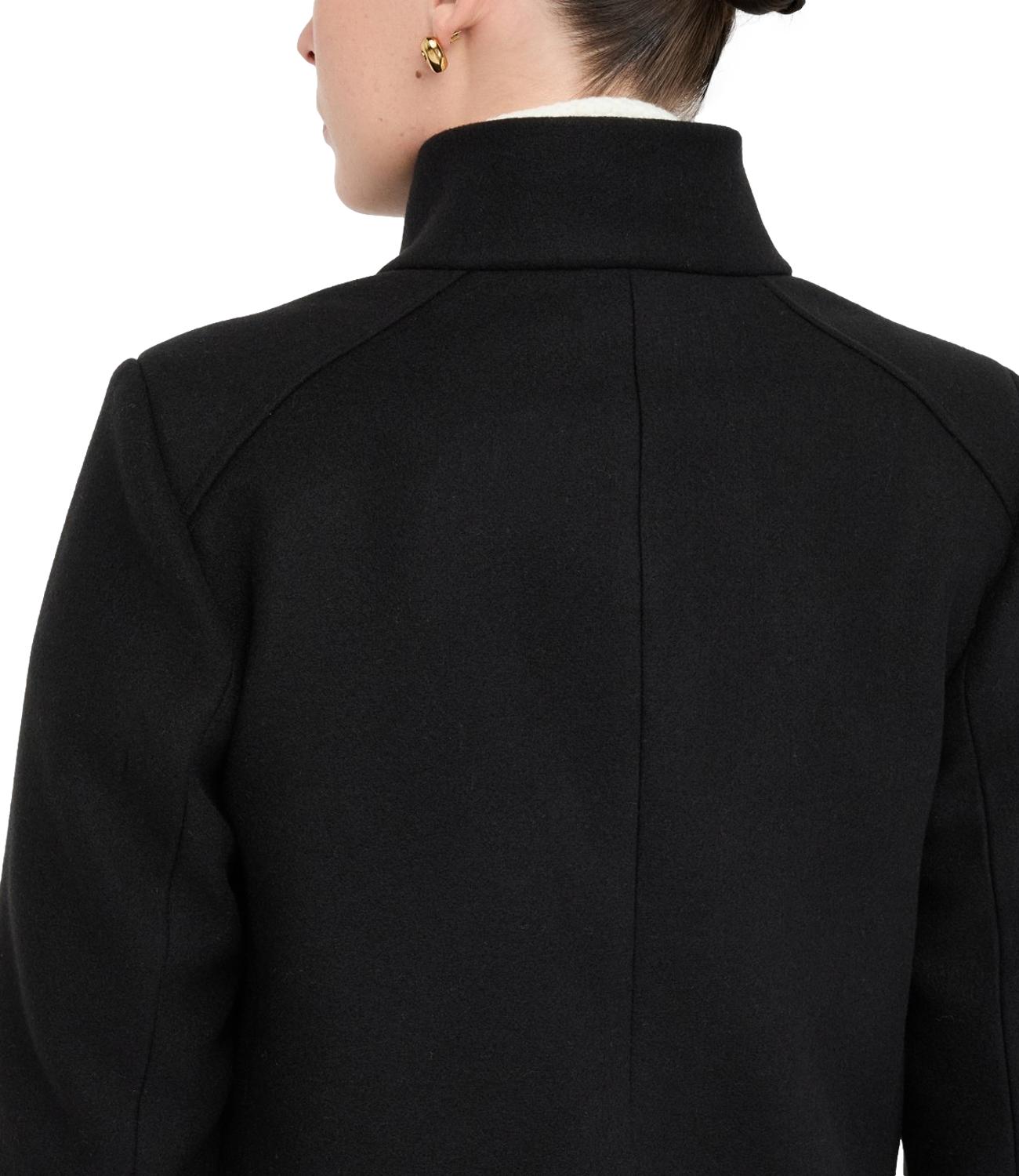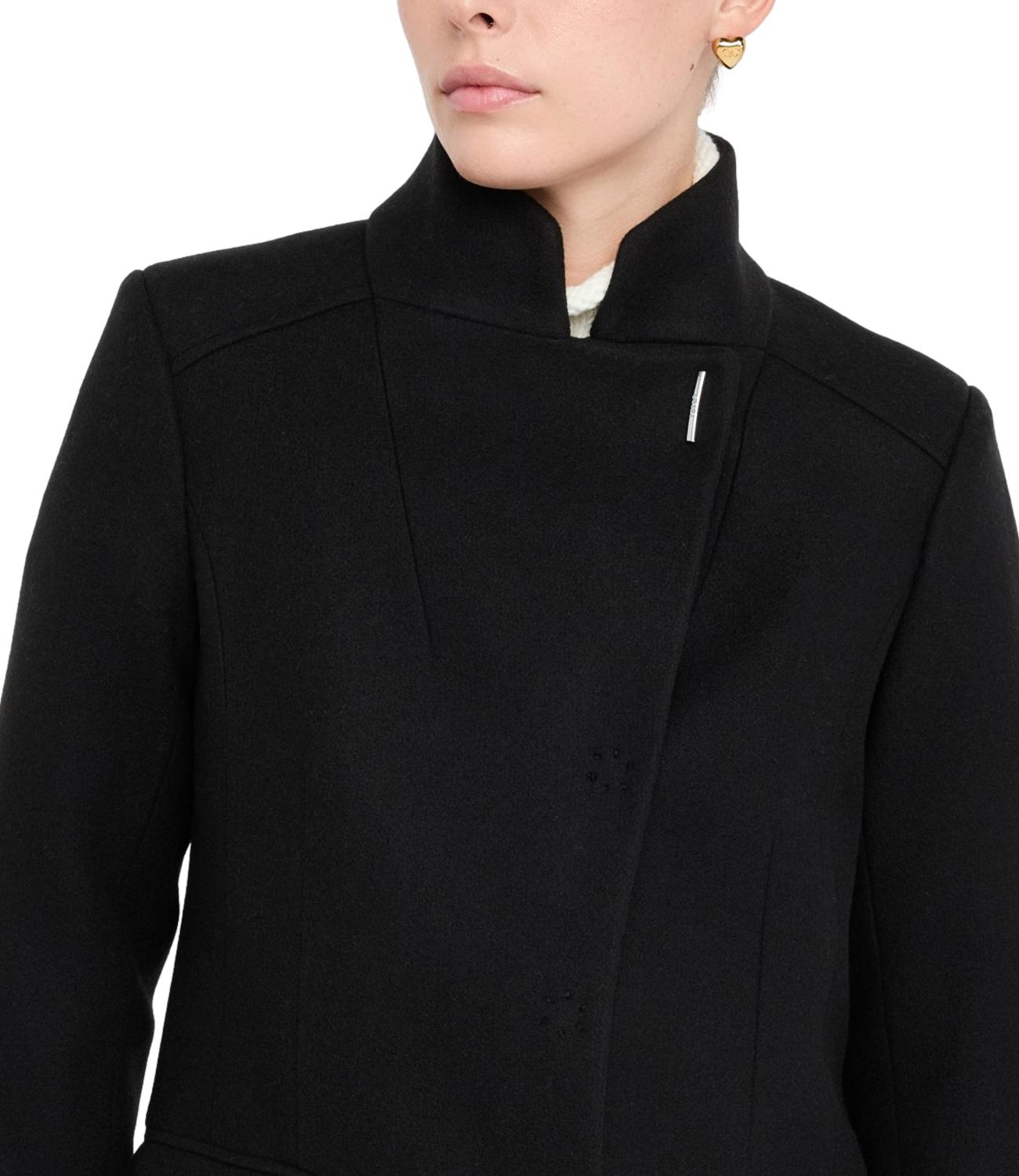 Il design è caratterizzato da una chiusura a doppiopetto con bottoni e da un taglio sartoriale che esalta la figura. Il cappotto è leggero e comodo, ideale per un comfort ottimale.