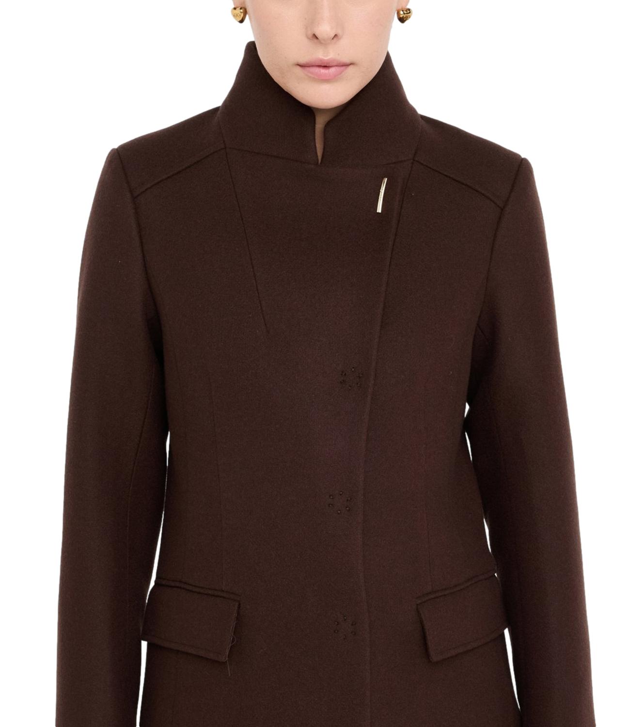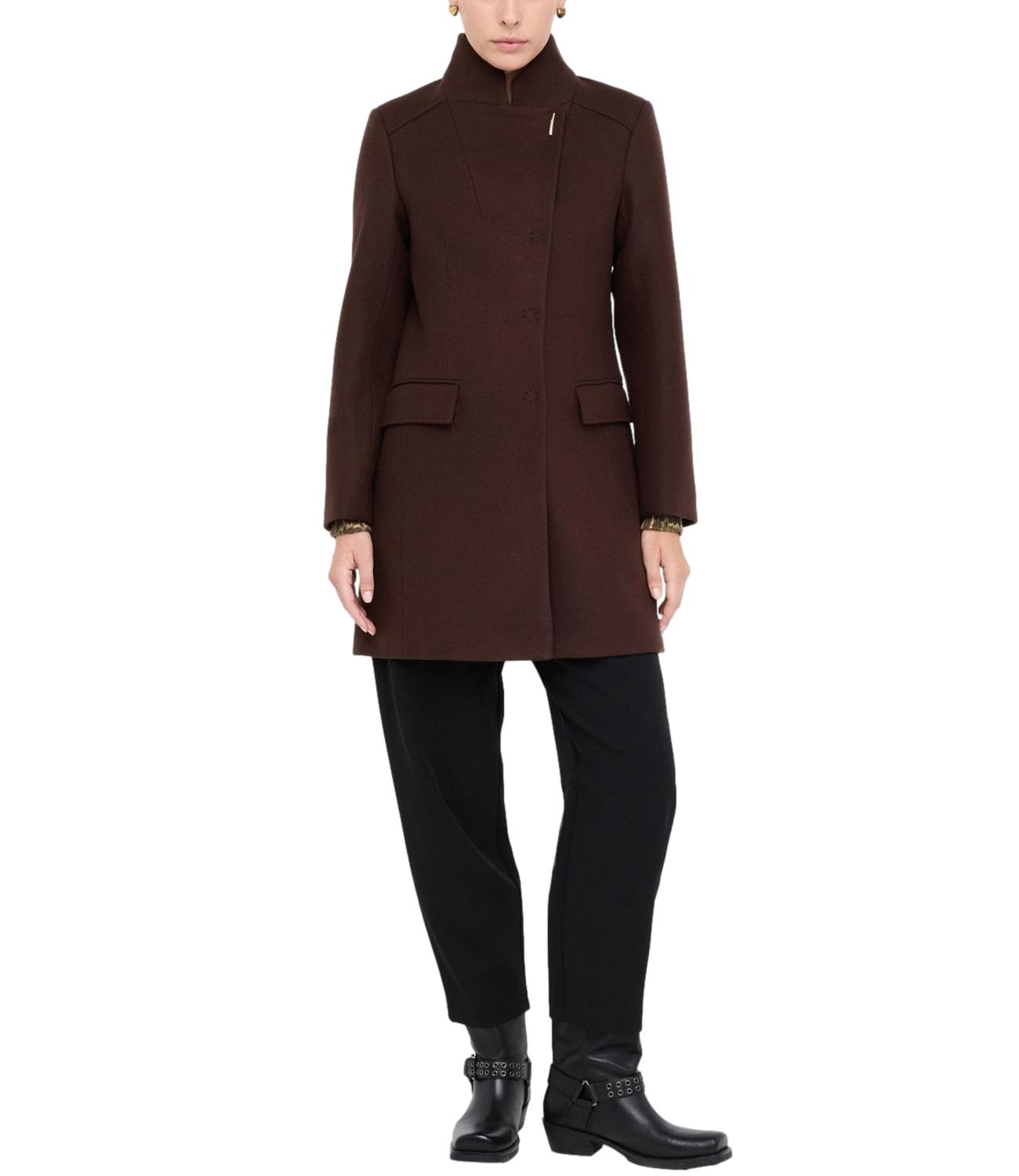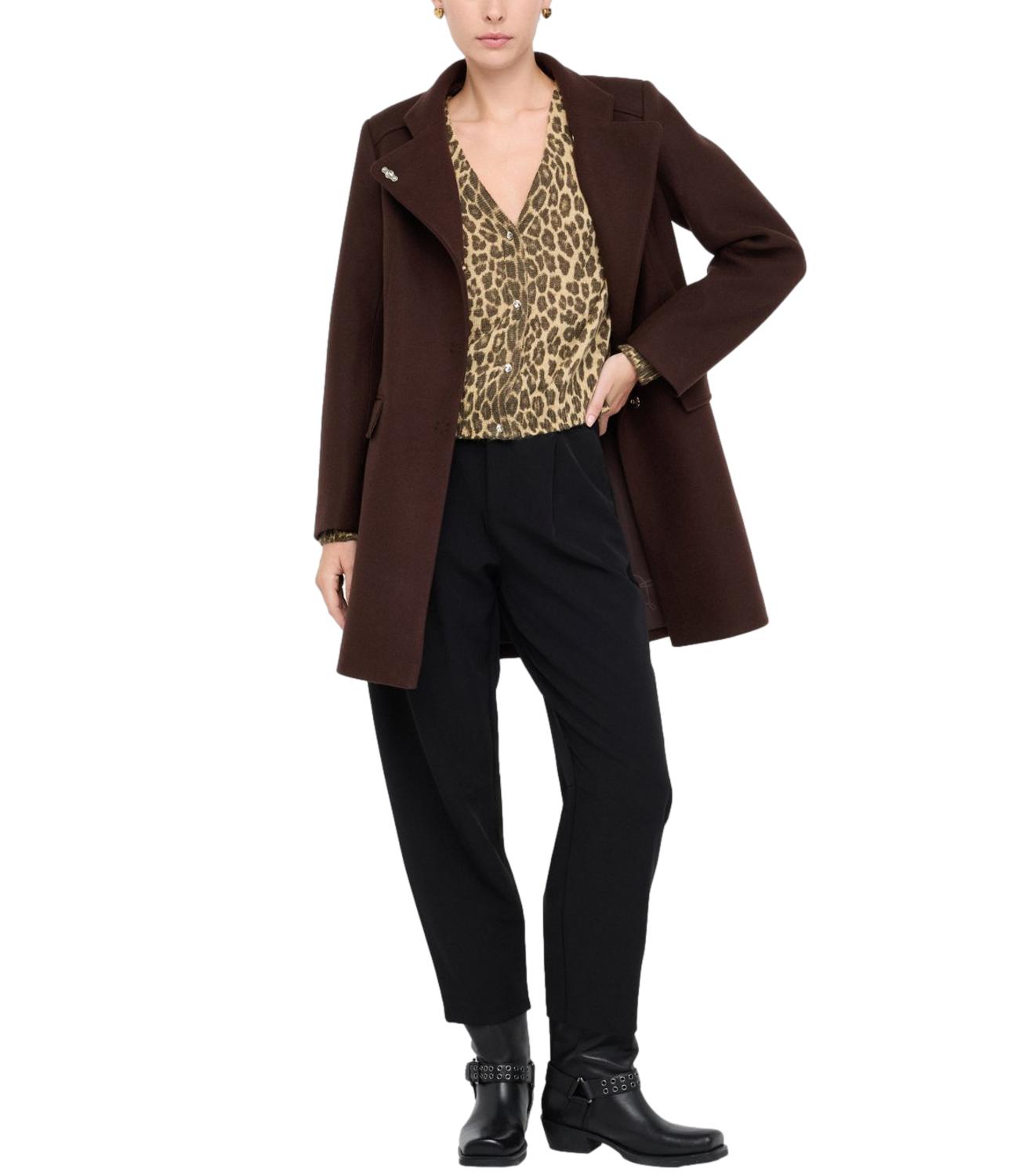 Il design è caratterizzato da una chiusura a doppiopetto con bottoni e da un taglio sartoriale che esalta la figura. Il cappotto è leggero e comodo, ideale per un comfort ottimale.
