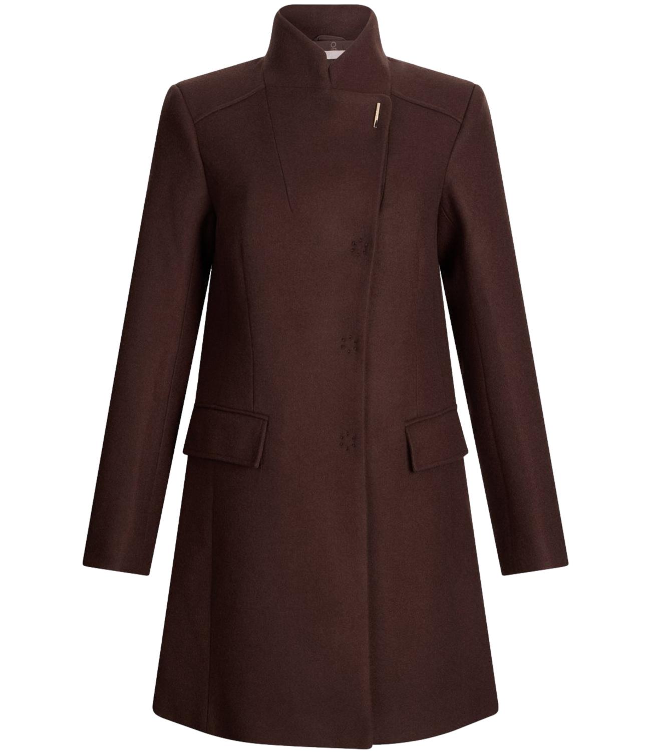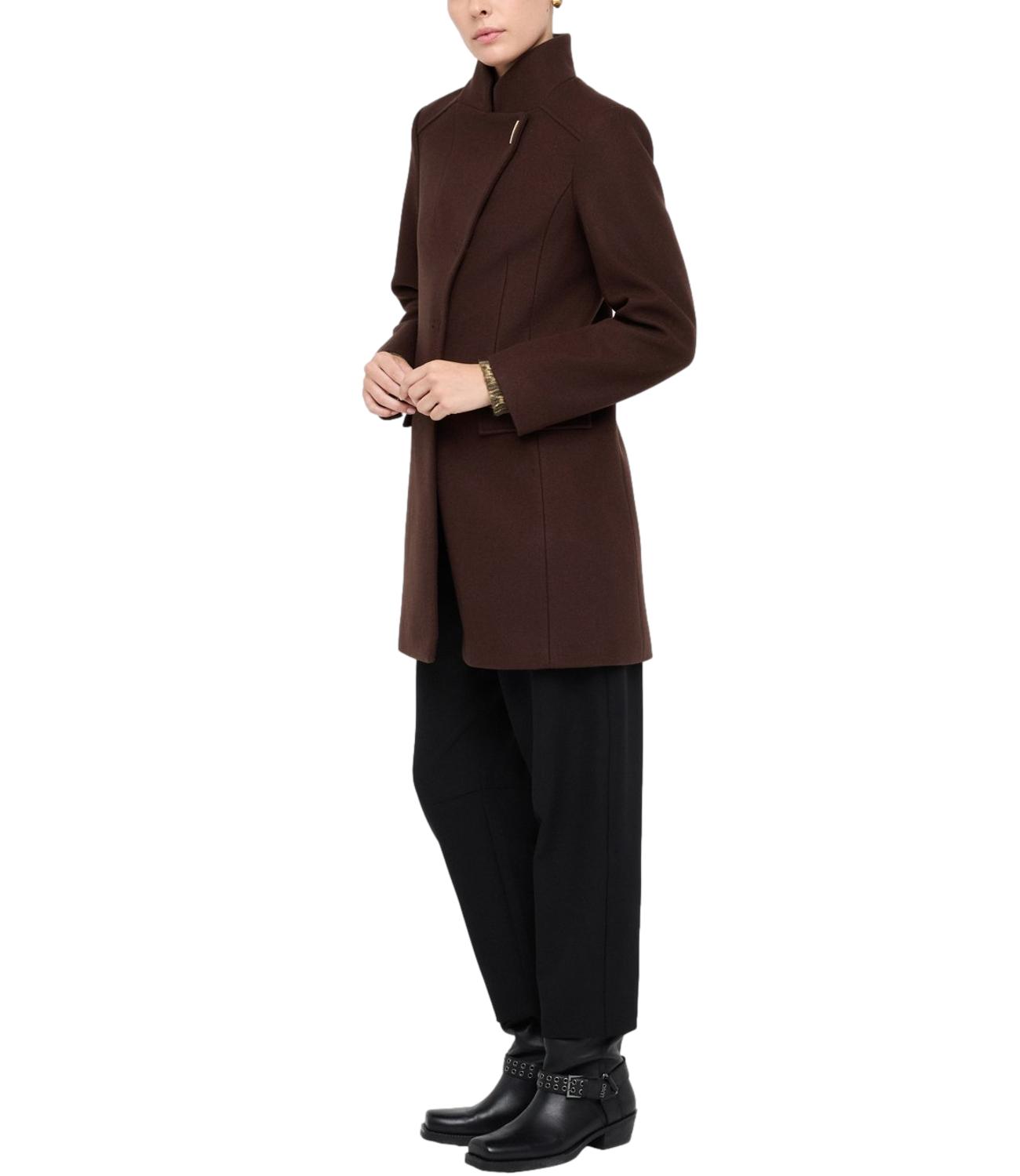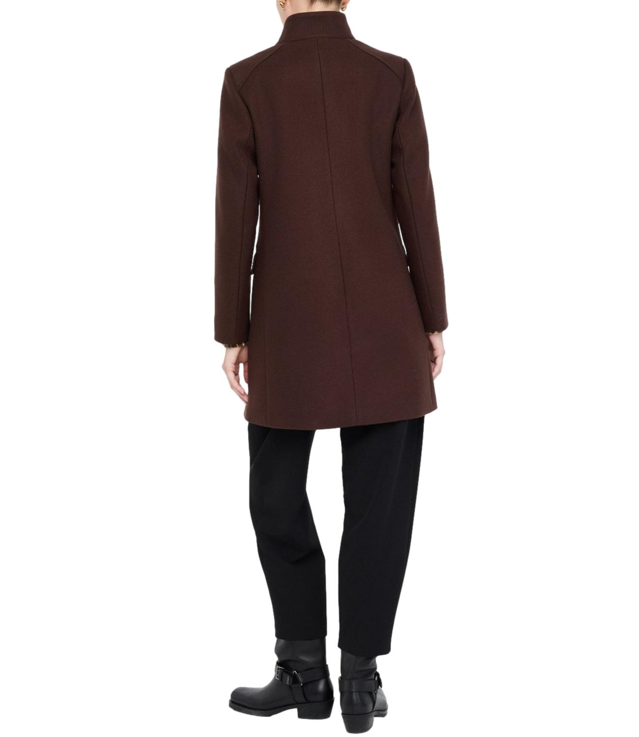 Il design è caratterizzato da una chiusura a doppiopetto con bottoni e da un taglio sartoriale che esalta la figura. Il cappotto è leggero e comodo, ideale per un comfort ottimale.