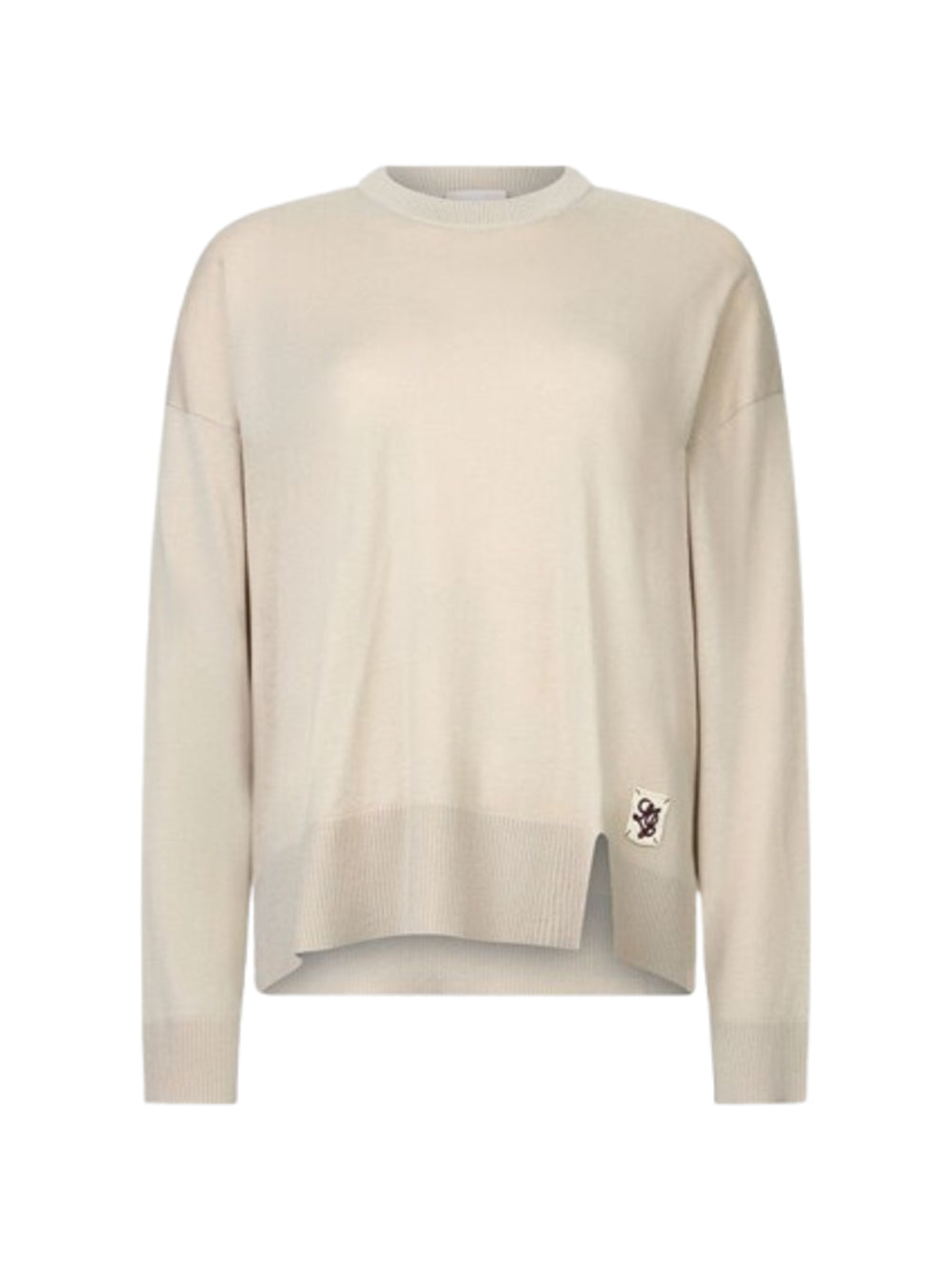 Il taglio classico girocollo e le maniche lunghe assicurano una vestibilità piacevole, mentre i bordi a costine definiscono il modello. Il dettaglio distintivo è il motivo cut-out al fondo, che aggiunge un elemento di modernità e originalità. Una discreta patch logata al fondo firma il capo.