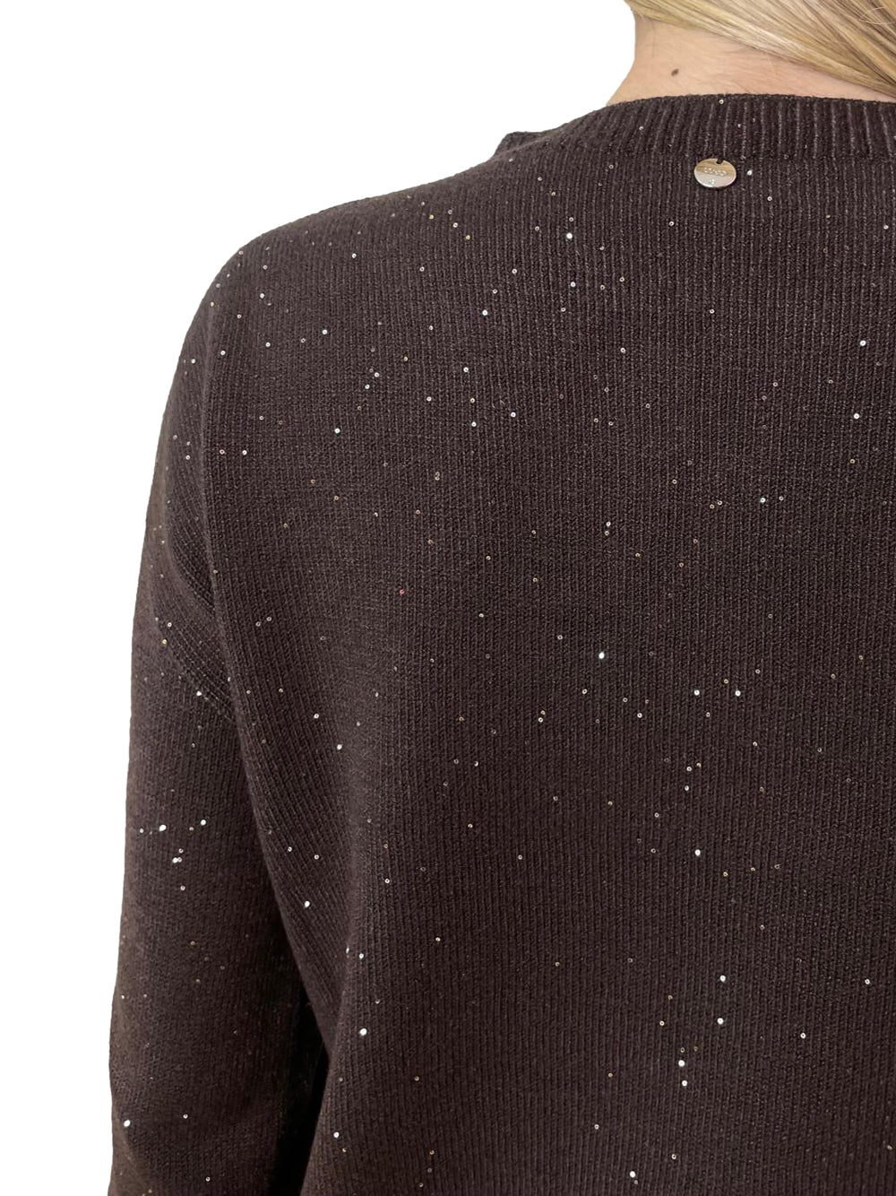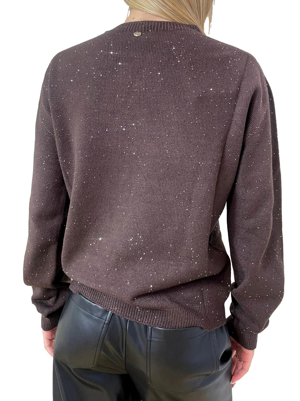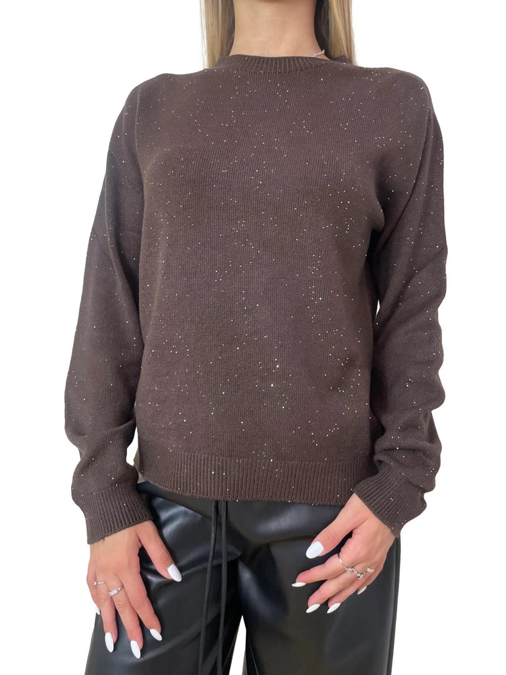 Maglia Girocollo in Misto Viscosa con Micro Paillettes – Colore Moro