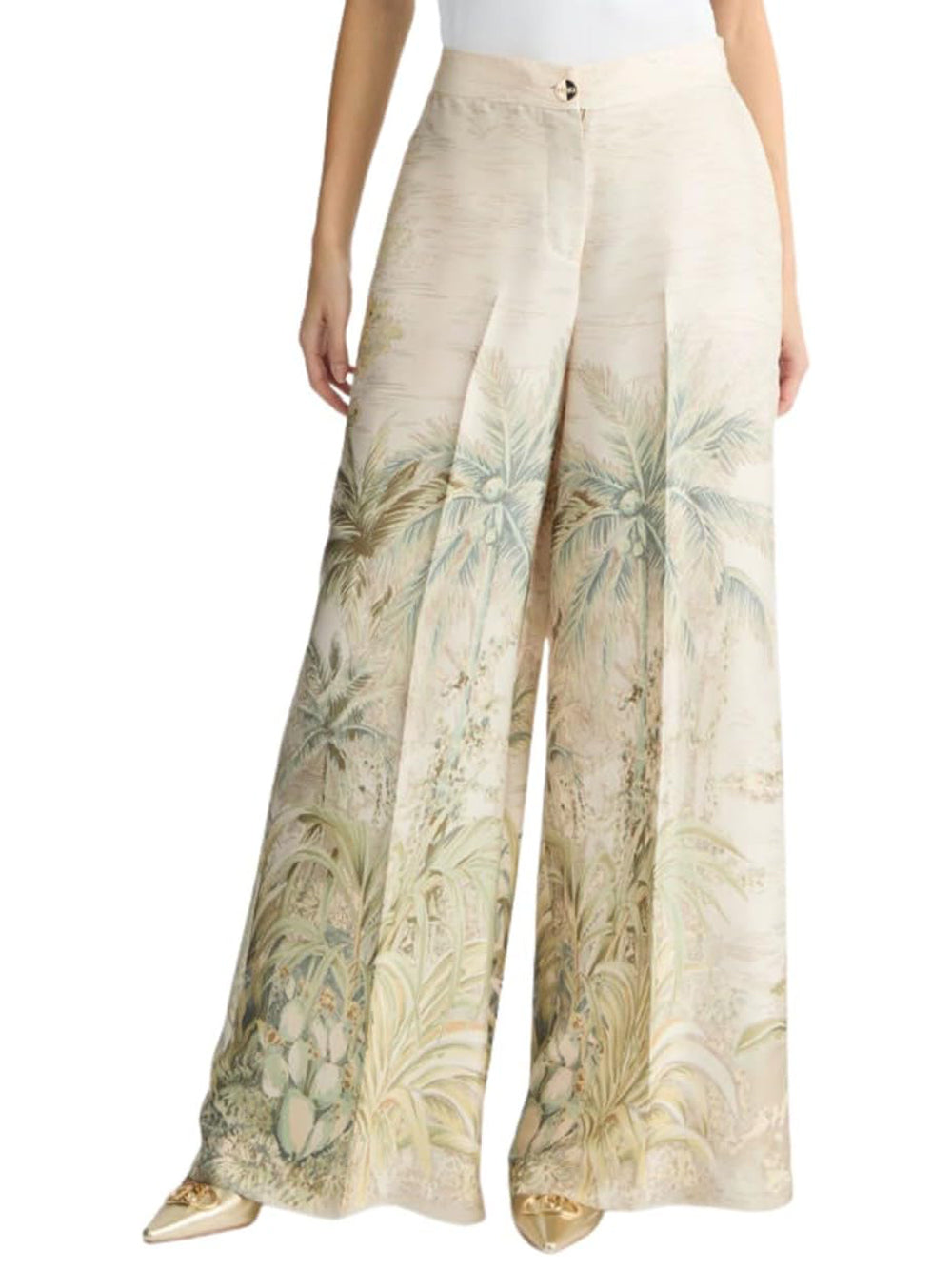 Liu Jo Pantalone Palazzo Donna Green Jungle Printed. Composizione: 100% Poliestere.