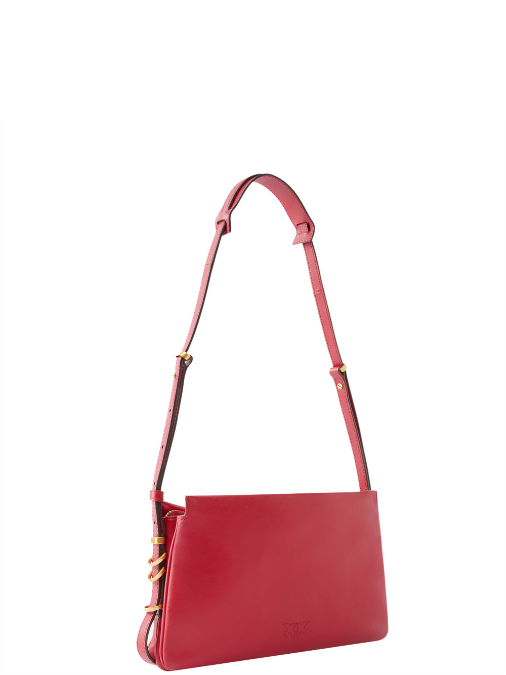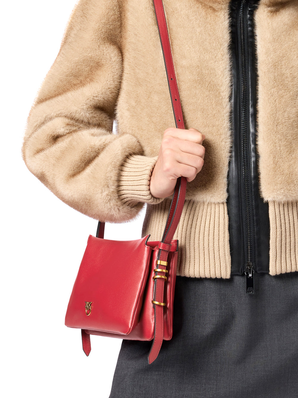 Borsa piccola a tracolla realizzata in morbida pelle di vitello 100%, dal design elegante e raffinato. La silhouette leggermente a trapezio con costruzione a triplo soffietto le dona un carattere distintivo. La chiusura a calamita custodisce due scomparti interni separati da una tramezza centrale con zip, per una perfetta organizzazione. La tracolla regolabile in pelle, arricchita da anelli decorativi in metallo, permette di indossarla a spalla, a mano o crossbody. Dettaglio iconico: la placca con logo Love Birds sul davanti.