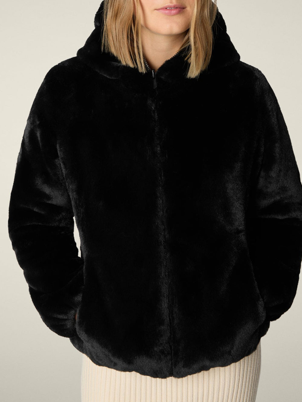 L'eco-pelliccia Laila della linea FURY di Save The Duck è un capo d'impatto che unisce moda etica e versatilità, perfetto per le giornate più fredde. Questo modello è reversibile, offrendo due look distinti in un unico capo: