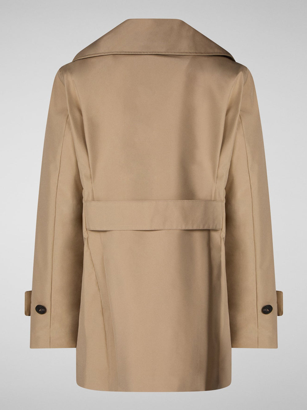 Dettagli: Chiusura a doppiopetto, ampi revers, martingala sul retro, cinturini regolabili ai polsi, bottoni personalizzati, logo sulla manica