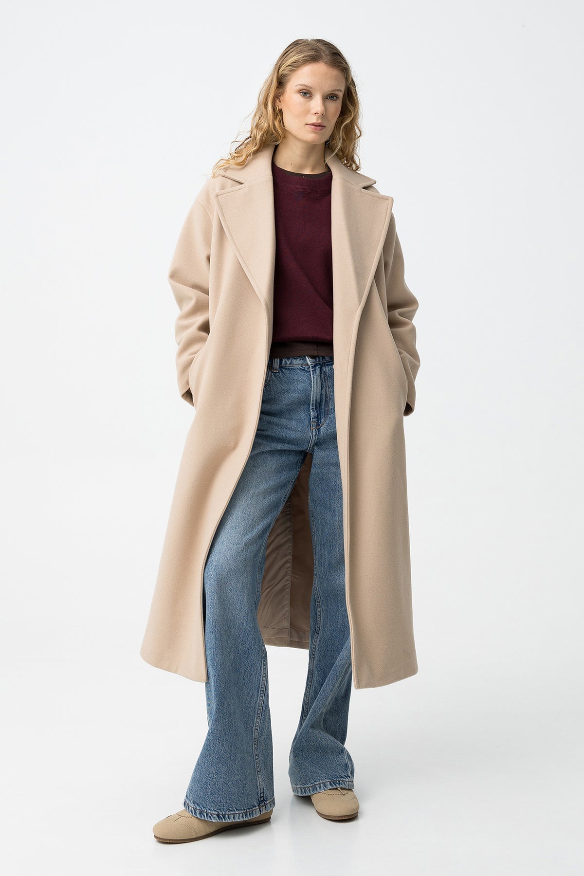 Dalla linea slanciata e sobria, questo cappotto è un'aggiunta versatile al tuo guardaroba invernale. Il taglio relaxed fit assicura una vestibilità comoda e contemporanea, mentre il collo a revers e le maniche lunghe mantengono un look classico. La chiusura è completata da una cintura dello stesso tessuto, che permette di regolarne la vestibilità e di valorizzare la silhouette. È dotato di pratiche tasche laterali a filetto e di interni foderati.