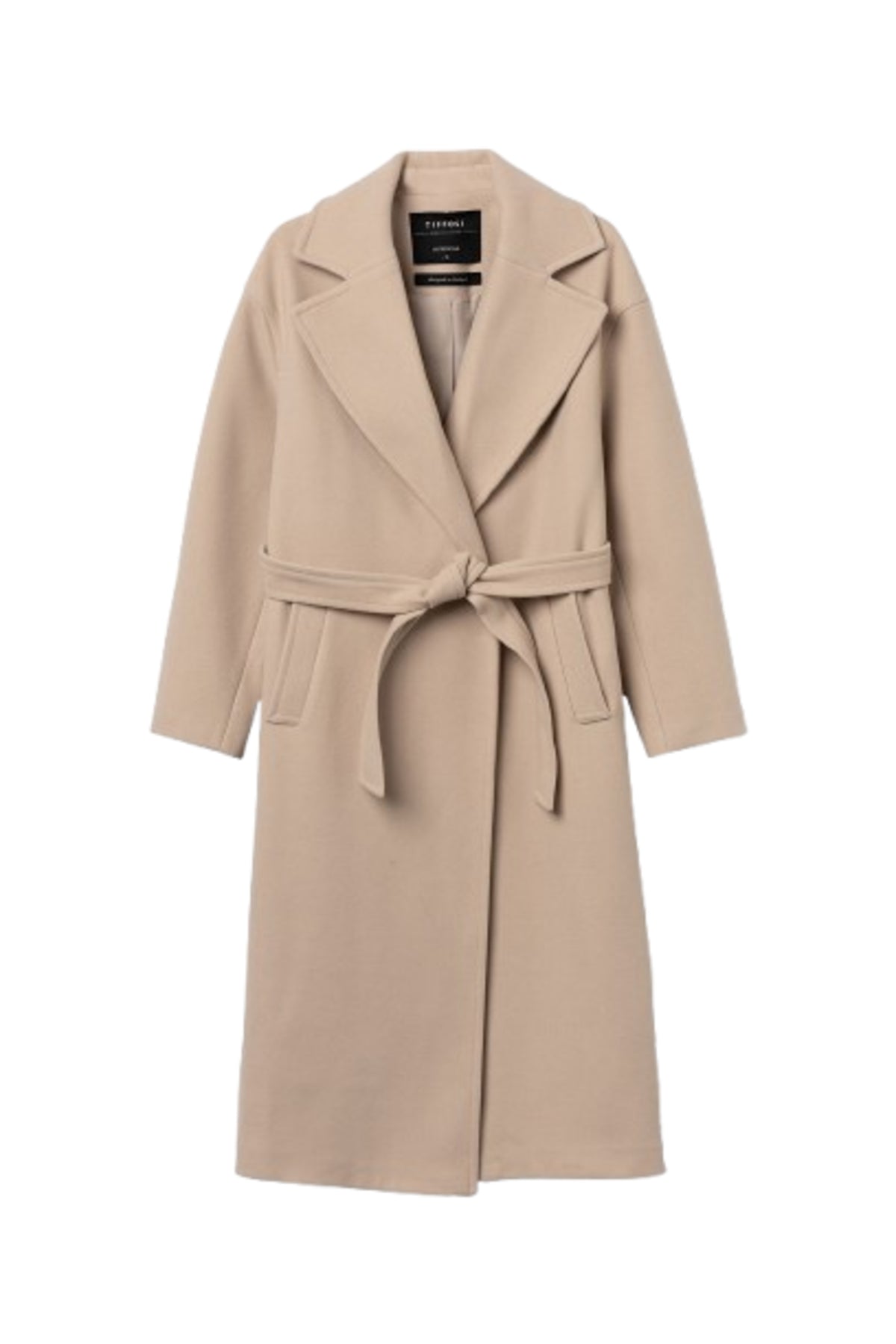 Dettagli: Collo a revers, Maniche lunghe, Tasche laterali a filetto, Cintura regolabile nello stesso tessuto, Interni foderati