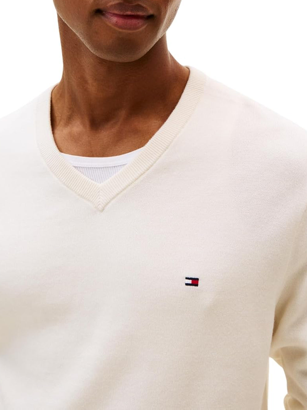 Dettagli: Il pullover in puro cotone pettinato, con scollatura a V e bandierina ricamata sul petto, aggiunge una nota sofisticata ai tuoi look a strati. • Puro cotone pettinato • Scollatura a V • Colletto, polsini e fondo a coste • Nastro iconico sulla scollatura • Branding Tommy Hilfiger • Bandierina Tommy Hilfiger ricamata sul petto • Spalle leggermente scese Vestibilità: Regular fit Composizione: 100% cotone
