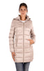 Piumino da donna di media lunghezza dal design femminile, con un taglio svasato che sottolinea la silhouette. Proposto in nylon brillante dal look casual-chic, è ideale per proteggerti nelle fredde giornate invernali! Chiusura con zip, tasche frontali, etichetta logo lungo la manica e cappuccio staccabile.