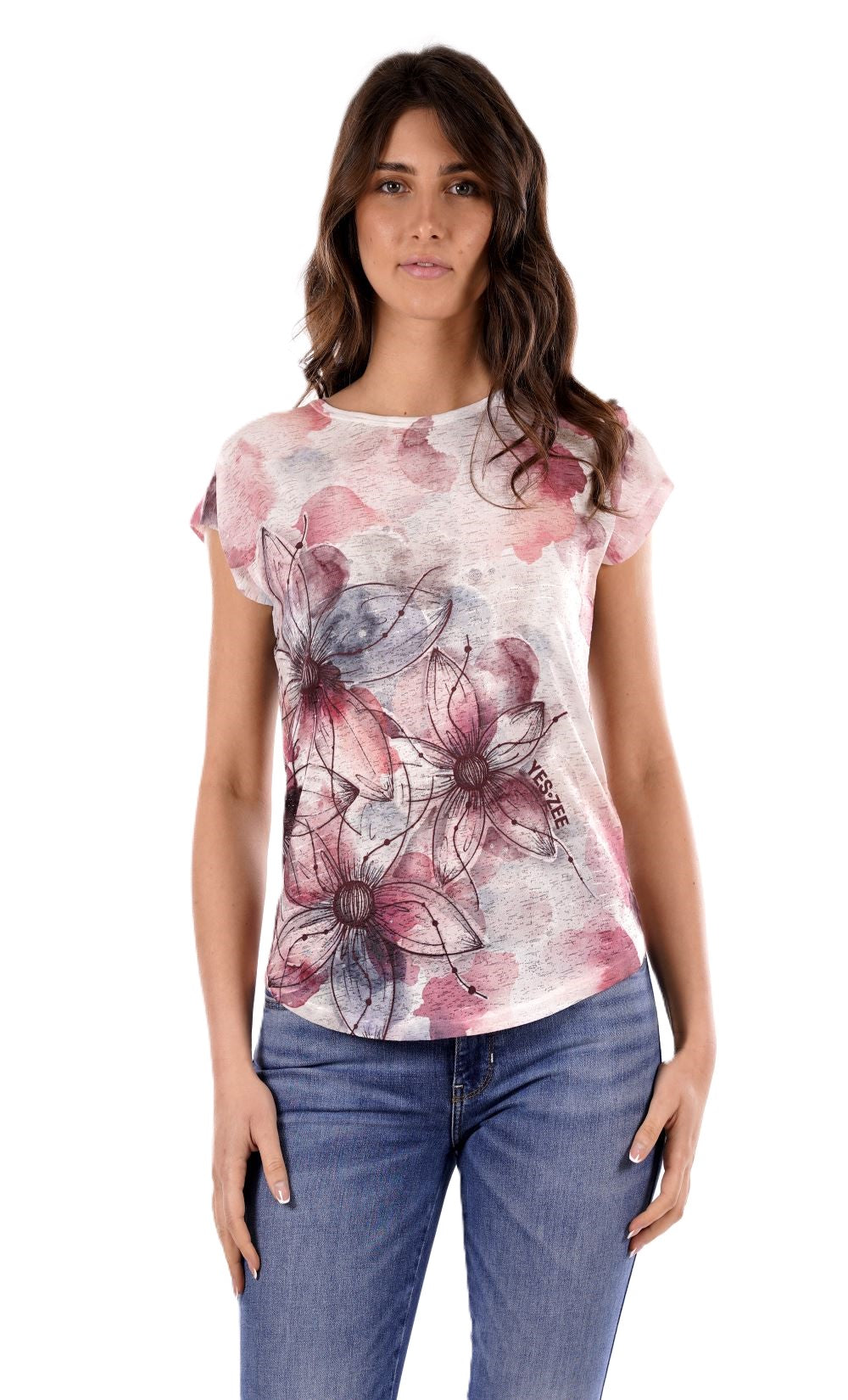Yes Zee T-shirt Donna Stampa Sublimatica Donna Mod. T243 Y302 2425 Variante Rosa
